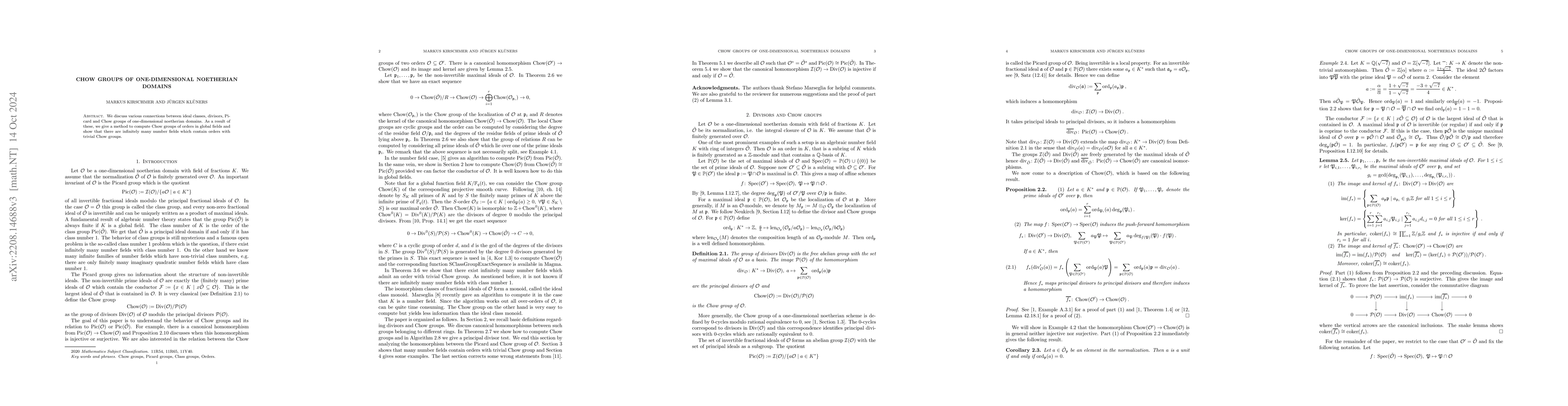 This paper explores the relationships between ideal classes, divisors, Picard groups, and Chow groups of orders in number fields, establishing a method to compute these Chow groups and demonstrating that there exist infinitely many number fields with orders having trivial Chow groups.