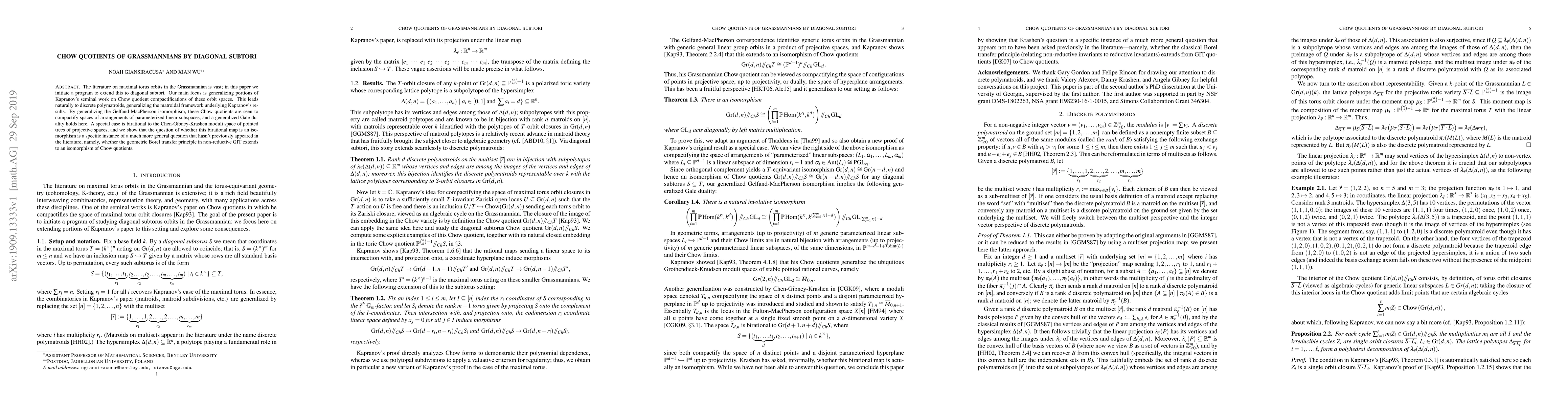 The literature on maximal torus orbits in the Grassmannian is vast; in this paper we initiate a program to extend this to diagonal subtori. Our main focus is generalizing portions of Kapranov's seminal work on Chow quotient compactifications of these orbit spaces. This leads naturally to discrete polymatroids, generalizing the matroidal framework underlying Kapranov's results. By generalizing the Gelfand-MacPherson isomorphism, these Chow quotients are seen to compactify spaces of arrangements of parameterized linear subspaces, and a generalized Gale duality holds here. A special case is birational to the Chen-Gibney-Krashen moduli space of pointed trees of projective spaces, and we show that the question of whether this birational map is an isomorphism is a specific instance of a much more general question that hasn't previously appeared in the literature, namely, whether the geometric Borel transfer principle in non-reductive GIT extends to an isomorphism of Chow quotients.