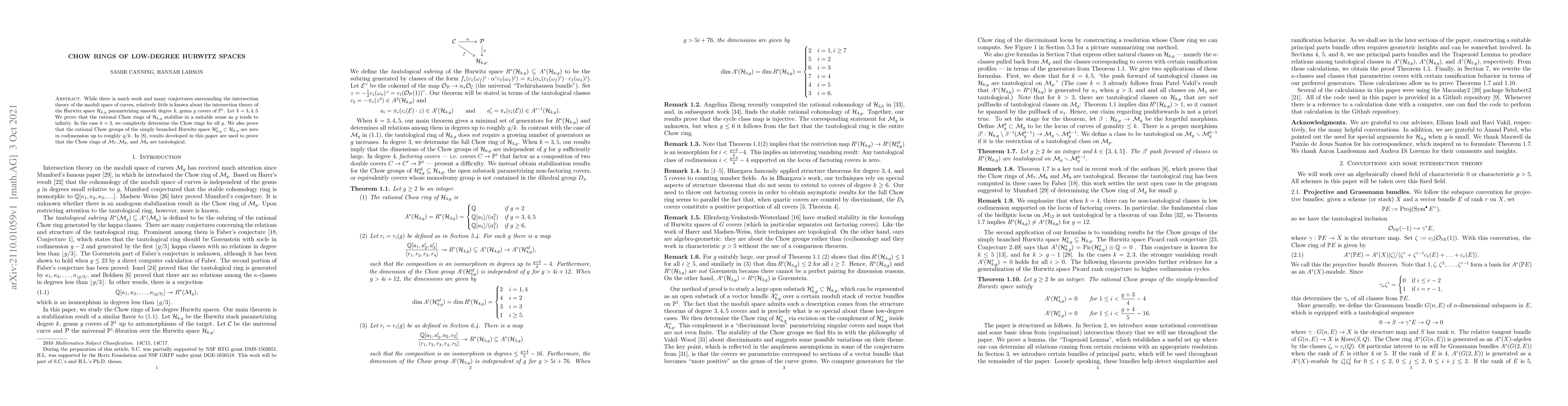 Researchers investigate the intersection theory of Hurwitz spaces, a type of curve space, finding that rational Chow rings stabilize as genus increases for low-degree covers of ℑ^1.