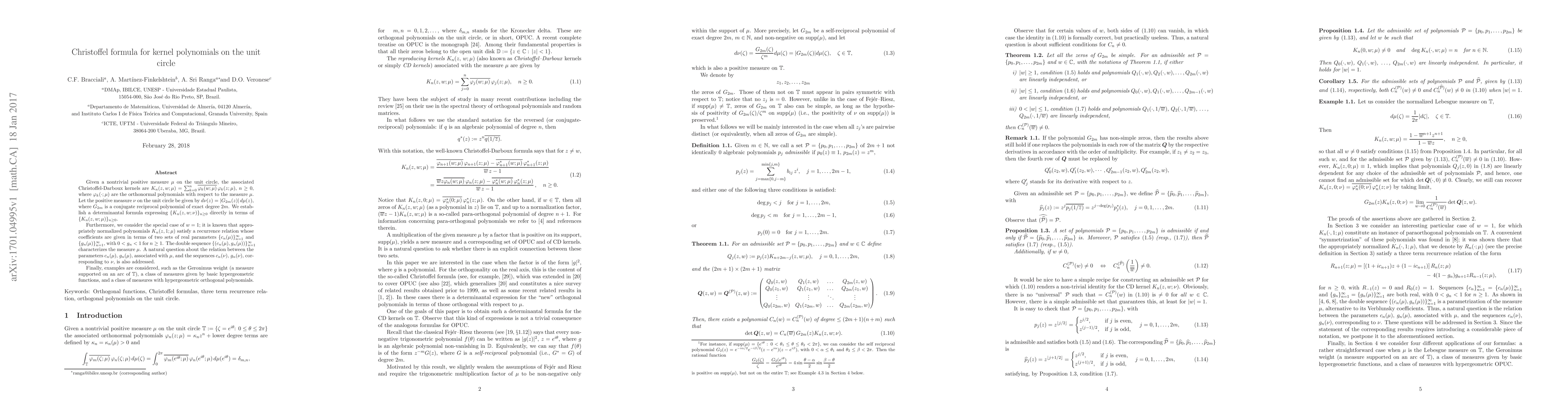 Christoffel-Darboux kernels are $K_n(z, w;\mu) =