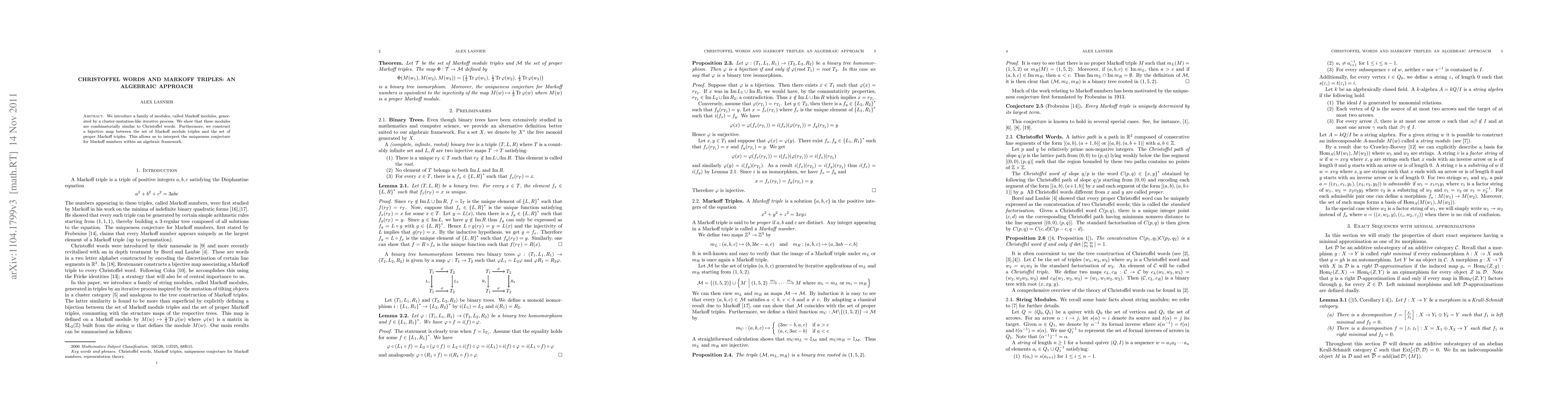 The paper introduces Markoff modules, showing their combinatorial similarity to Christoffel words and constructs a bijection between Markoff module triples and proper Markoff triples, facilitating an algebraic interpretation of the uniqueness conjecture for Markoff numbers.