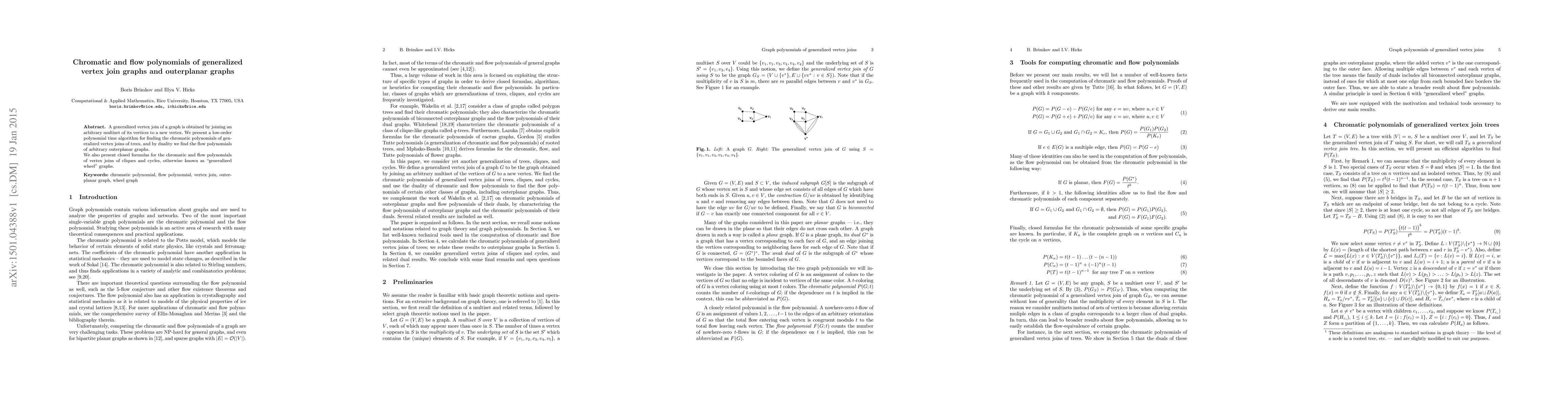 A generalized vertex join of a graph is obtained by joining an arbitrary multiset of its vertices to a new vertex. We present a low-order polynomial time algorithm for finding the chromatic polynomials of generalized vertex joins of trees, and by duality we find the flow polynomials of arbitrary outerplanar graphs. We also present closed formulas for the chromatic and flow polynomials of vertex joins of cliques and cycles, otherwise known as "generalized wheel" graphs.