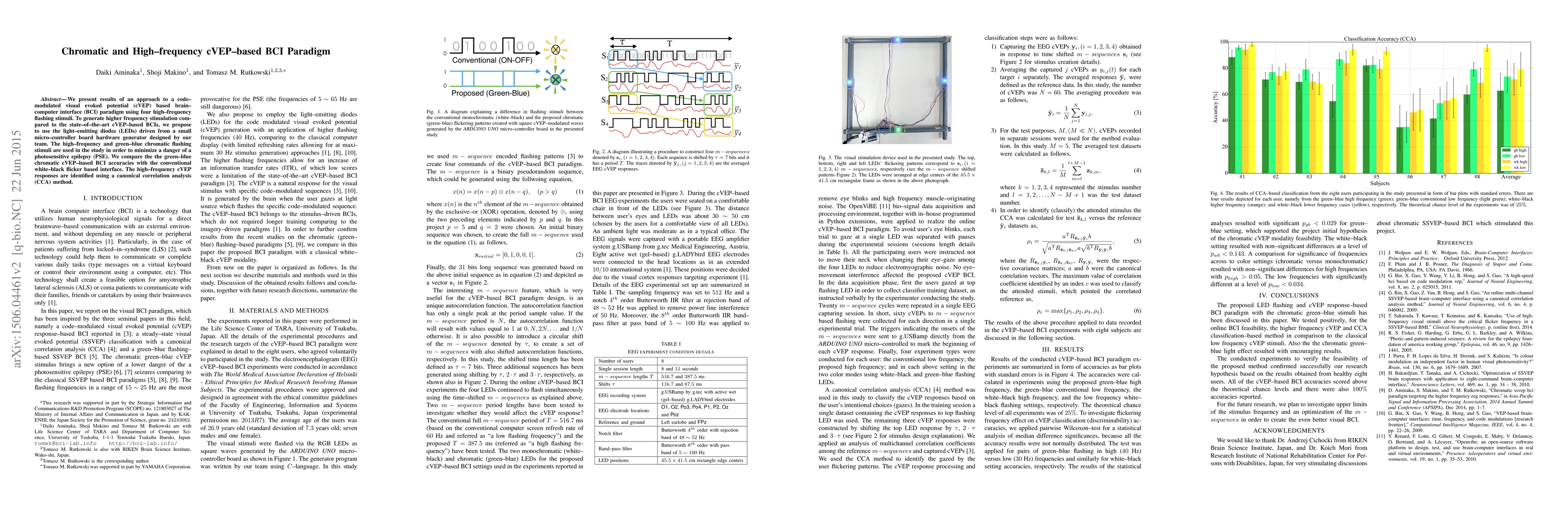 This study introduces a high-frequency cVEP-based BCI paradigm using green-blue LED stimuli to minimize risks of photosensitive epilepsy, comparing its accuracy to traditional white-black flicker interfaces. The proposed system employs custom hardware for generating higher frequency stimulation.