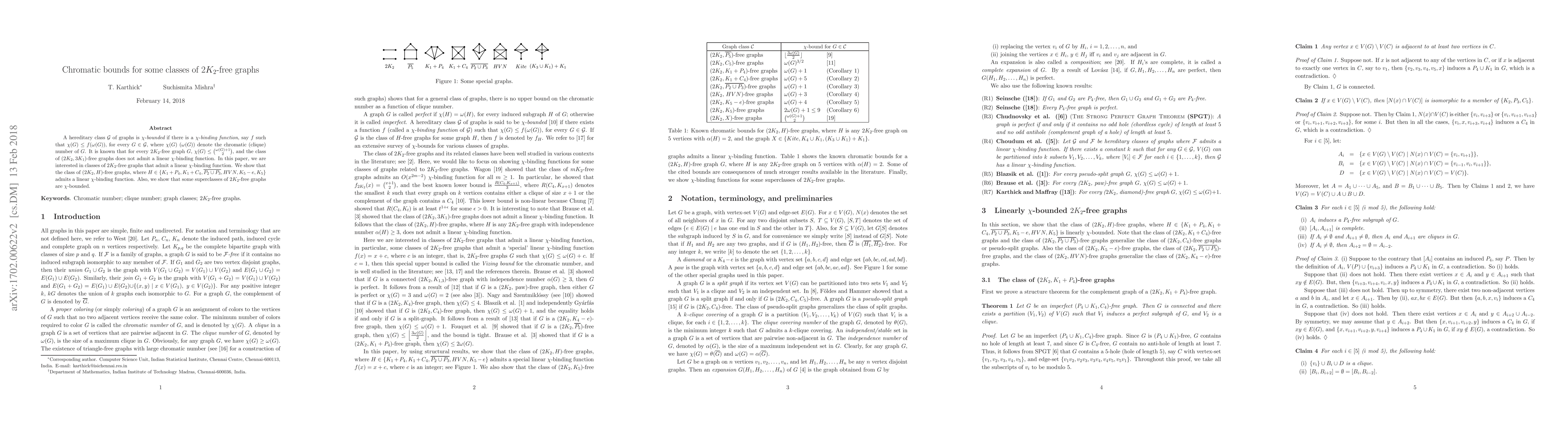 A hereditary class $\mathcal{G}$ of graphs is $\chi$-bounded if there is a $\chi$-binding function, say $f$ such that $\chi(G) \leq f(\omega(G))$, for every $G \in \cal{G}$, where $\chi(G)$ ($\omega(G)$) denote the chromatic (clique) number of $G$. It is known that for every $2K_2$-free graph $G$, $\chi(G) \leq \binom{\omega(G)+1}{2}$, and the class of ($2K_2, 3K_1$)-free graphs does not admit a linear $\chi$-binding function. In this paper, we are interested in classes of $2K_2$-free graphs that admit a linear $\chi$-binding function. We show that the class of ($2K_2, H$)-free graphs, where $H\in \{K_1+P_4, K_1+C_4, \overline{P_2\cup P_3}, HVN, K_5-e, K_5\}$ admits a linear $\chi$-binding function. Also, we show that some superclasses of $2K_2$-free graphs are $\chi$-bounded.