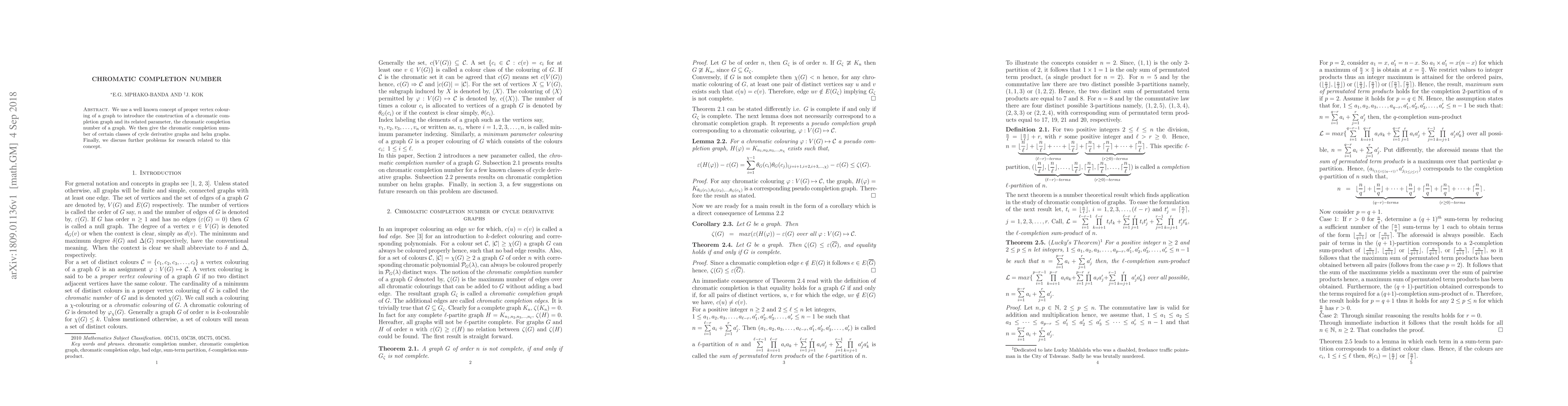 This paper introduces the chromatic completion graph and its parameter, the chromatic completion number, based on proper vertex coloring. It determines the chromatic completion number for specific classes of cycle derivative and helm graphs, and suggests further research directions.