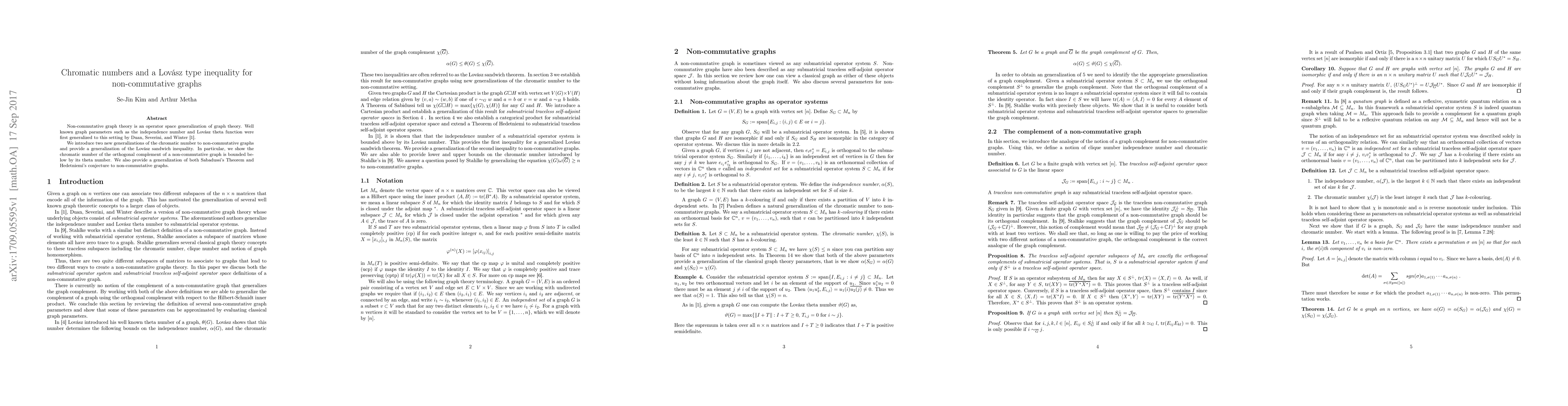 Non-commutative graph theory is an operator space generalization of graph theory. Well known graph parameters such as the independence number and Lov\'asz theta function were first generalized to this setting by Duan, Severini, and Winter. We introduce two new generalizations of the chromatic number to non-commutative graphs and provide a generalization of the Lov\'asz sandwich inequality. In particular, we show the chromatic number of the orthogonal complement of a non-commutative graph is bounded below by its theta number. We also provide a generalization of both Sabadussi's Theorem and Hedetniemi's conjecture to non-commutative graphs.