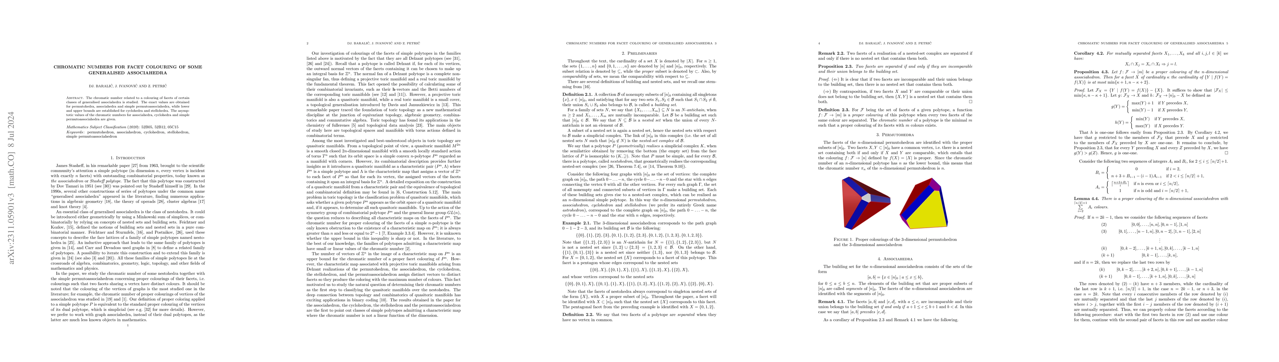 The chromatic number of a proper colouring of the facets of certain classes of generalized associahedra is studied. The exact values are obtained for the permutohedron and the associahedron, while lower and upper bounds are established for the $n$-dimensional cyclohedron, astrohedron and simple permutoassociahedron.