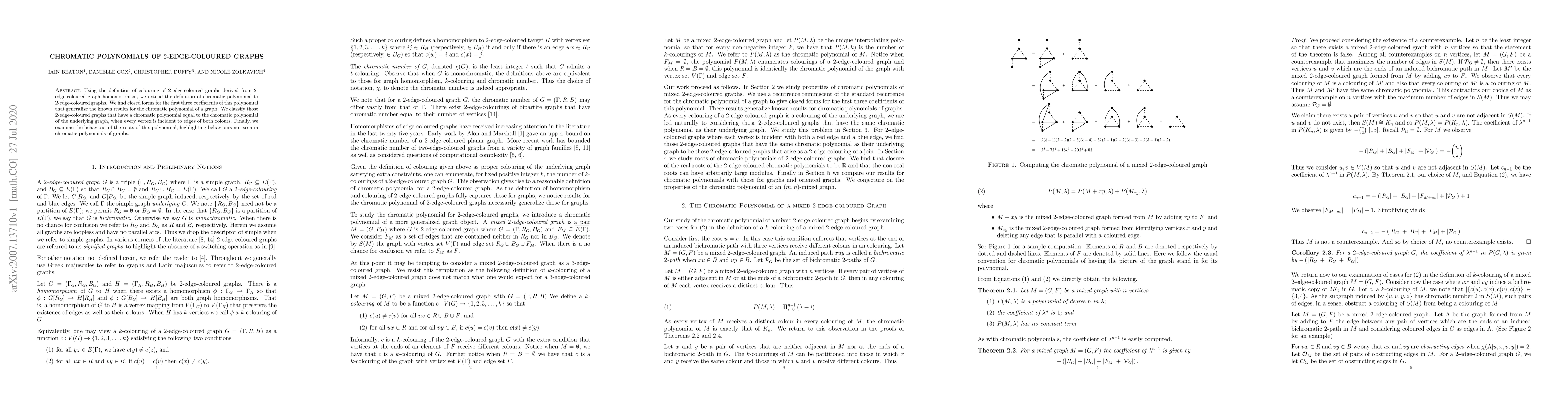 This paper extends the concept of chromatic polynomials to $2$-edge-coloured graphs, deriving closed forms for the first three coefficients and classifying those graphs where the chromatic polynomial matches that of the underlying graph. It also investigates unique behaviours of the roots of these polynomials compared to traditional chromatic polynomials.