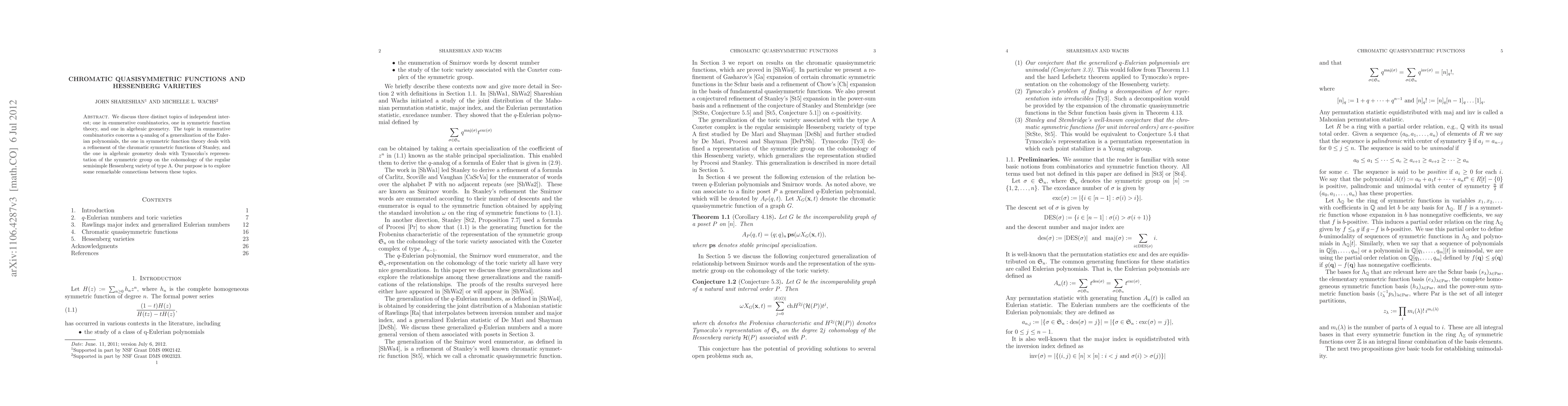 We discuss three distinct topics of independent interest; one in enumerative combinatorics, one in symmetric function theory, and one in algebraic geometry. The topic in enumerative combinatorics concerns a q-analog of a generalization of the Eulerian polynomials, the one in symmetric function theory deals with a refinement of the chromatic symmetric functions of Stanley, and the one in algebraic geometry deals with Tymoczko's representation of the symmetric group on the cohomology of the regular semisimple Hessenberg variety of type A. Our purpose is to explore some remarkable connections between these topics.