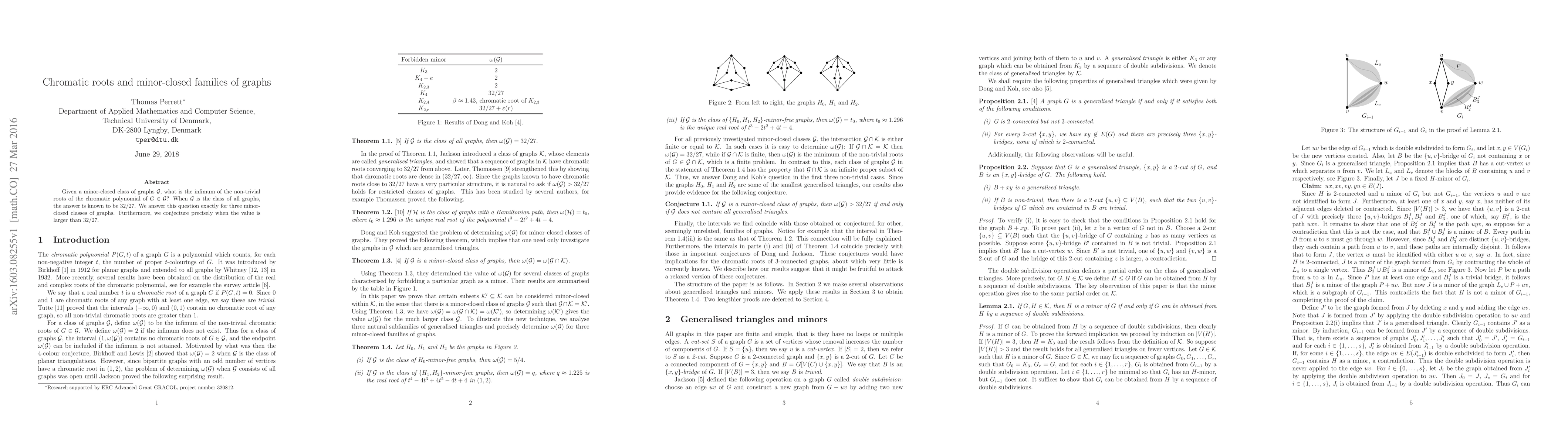 This paper investigates the infimum of non-trivial roots of the chromatic polynomial for specific minor-closed classes of graphs, determining exact values for three such classes and proposing a conjecture regarding when the value exceeds $32/27$.