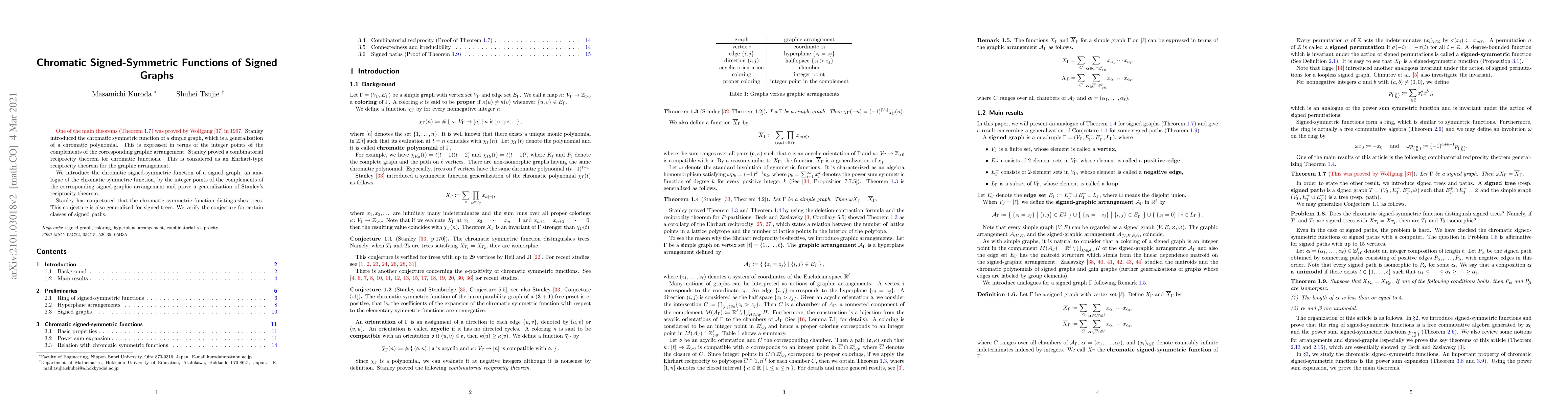 This paper introduces the chromatic signed-symmetric function for signed graphs, extending Stanley's chromatic symmetric function, and proves a generalized reciprocity theorem. It verifies Stanley's conjecture that the chromatic symmetric function distinguishes trees for certain classes of signed paths.