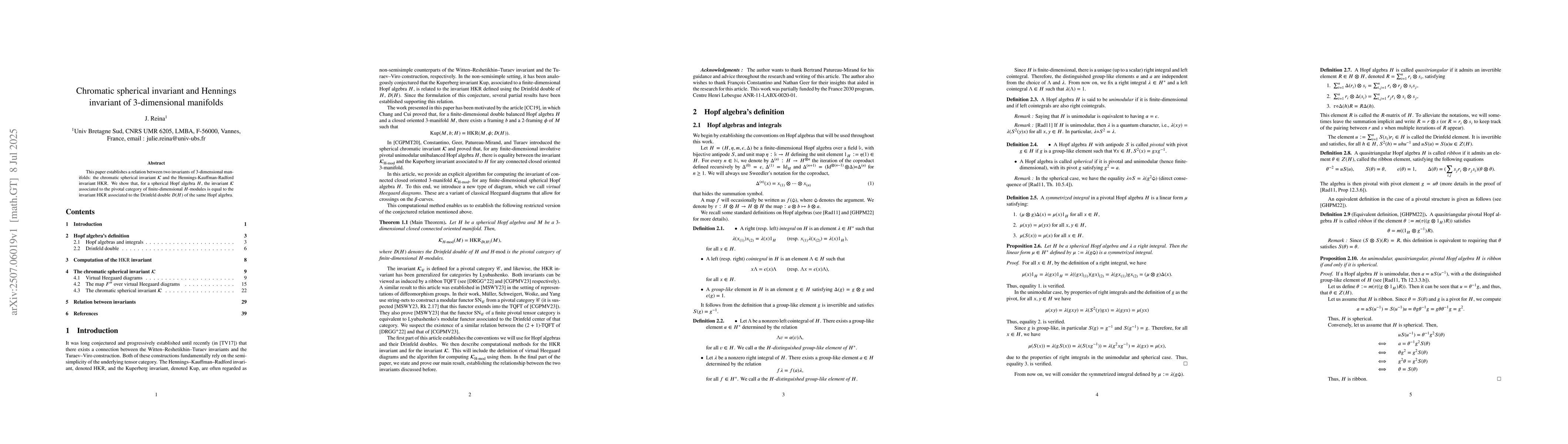 This paper establishes a relation between two invariants of $3$-dimensional manifolds: the chromatic spherical invariant $\mathcal{K}$ and the Hennings-Kauffman-Radford invariant $\operatorname{HKR}$. We show that, for a spherical Hopf algebra $H$, the invariant $\mathcal{K}$ associated to the pivotal category of finite-dimensional $H$-modules is equal to the invariant $\operatorname{HKR}$ associated to the Drinfeld double $D(H)$ of the same Hopf algebra.