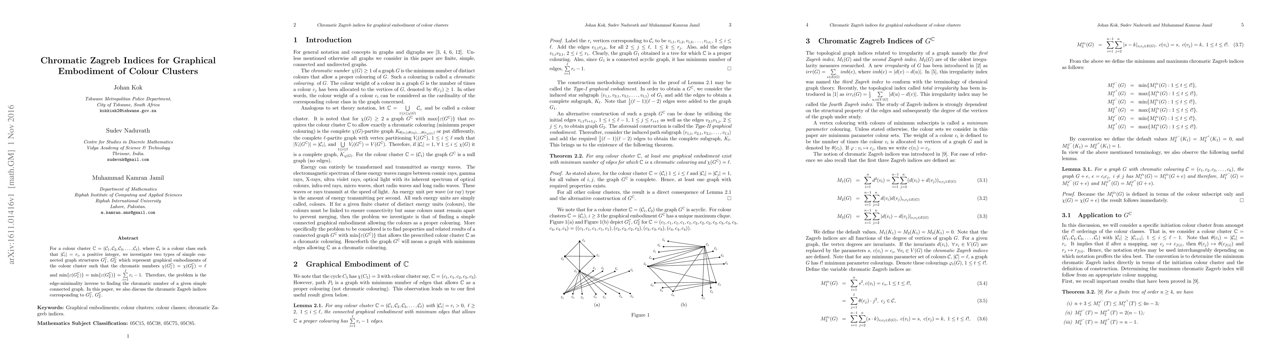 Researchers investigate graph structures representing colour clusters with specific chromatic properties, focusing on edge-minimality and chromatic Zagreb indices.