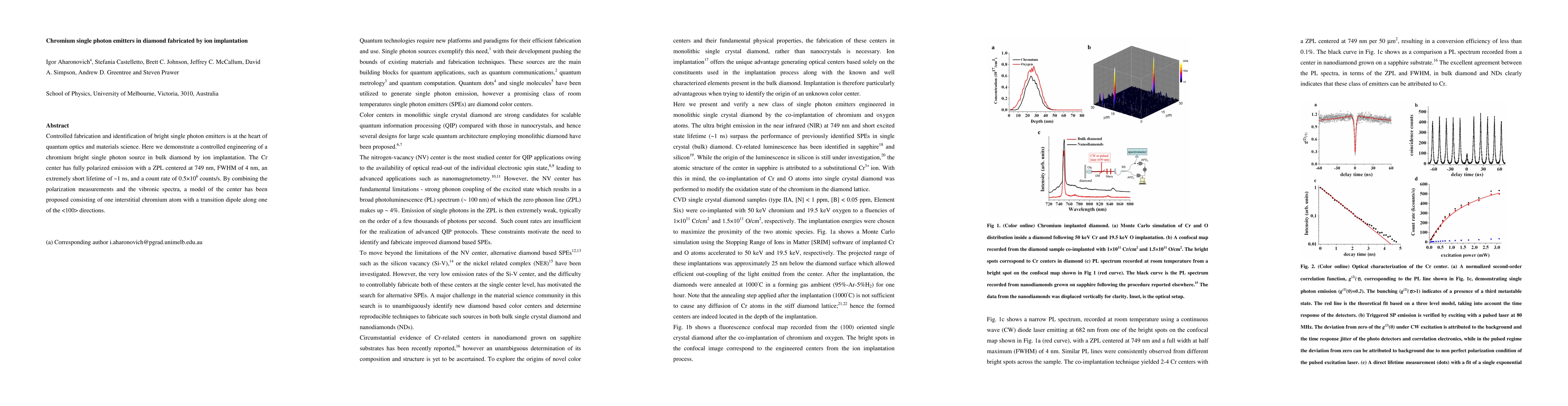 This study presents the fabrication of bright single photon emitters in bulk diamond via ion implantation of chromium, achieving fully polarized emission at 749 nm. The Cr center exhibits a short lifetime (~1 ns) and high count rate, with a proposed model involving a single interstitial chromium atom aligned along a <100> direction.