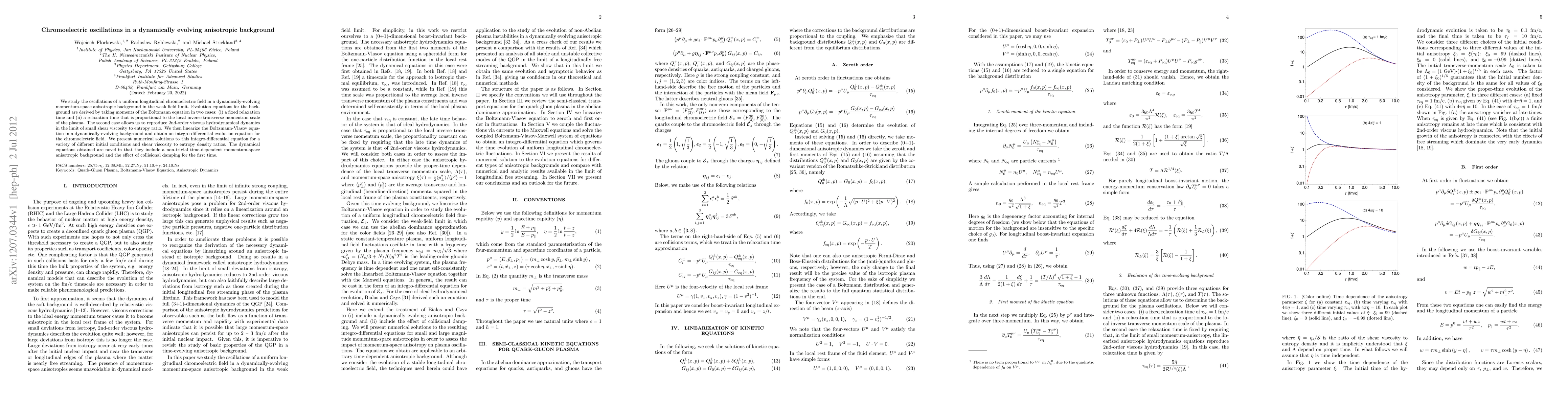 We study the oscillations of a uniform longitudinal chromoelectric field in a dynamically-evolving momentum-space anisotropic background in the weak field limit. Evolution equations for the background are derived by taking moments of the Boltzmann equation in two cases: (i) a fixed relaxation time and (ii) a relaxation time that is proportional to the local inverse transverse momentum scale of the plasma. The second case allows us to reproduce 2nd-order viscous hydrodynamical dynamics in the limit of small shear viscosity to entropy ratio. We then linearize the Boltzmann-Vlasov equation in a dynamically-evolving background and obtain an integro-differential evolution equation for the chromoelectric field. We present numerical solutions to this integro-differential equation for a variety of different initial conditions and shear viscosity to entropy density ratios. The dynamical equations obtained are novel in that they include a non-trivial time-dependent momentum-space anisotropic background and the effect of collisional damping for the first time.