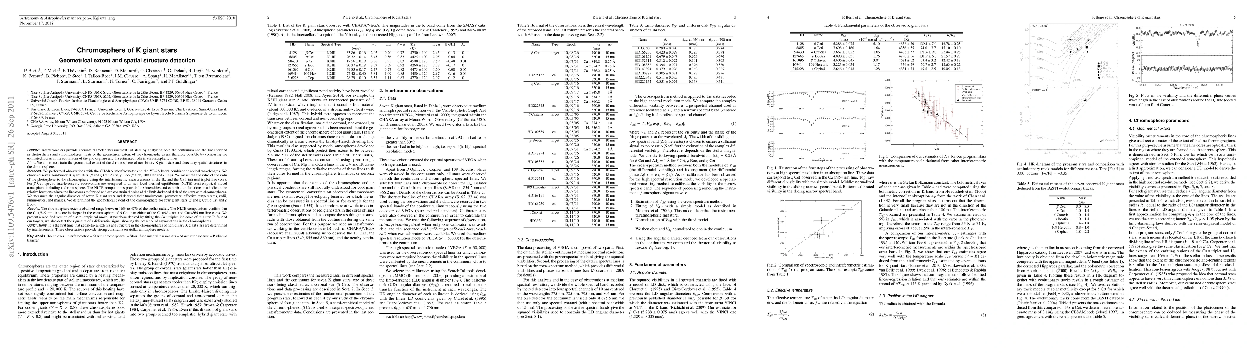 This study uses interferometry to determine the geometrical extent and spatial structures of the chromospheres in seven non-binary K giant stars. The research reveals that chromospheres range from 16% to 47% of the stellar radius and detects asymmetries in four stars, providing new constraints for stellar atmosphere models.