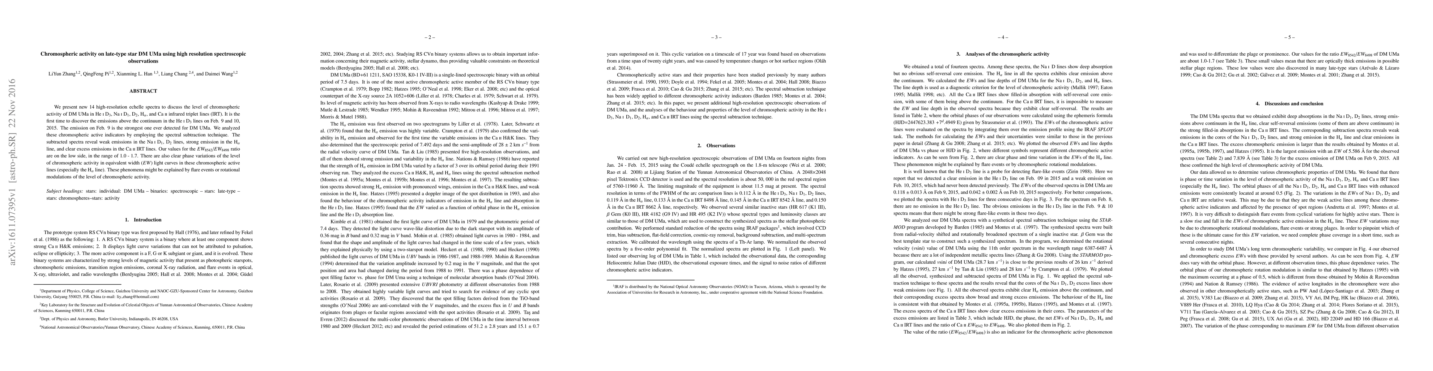 We present new 14 high-resolution echelle spectra to discuss the level of chromospheric activity of DM UMa in {He I} D3, {Na I} D1, D2, Halpha, and {Ca II} infrared triplet lines (IRT). It is the first time to discover the emissions above the continuum in the {He I} D3 lines on 2015 February 9 and 10. The emission on February 9 is the strongest one ever detected for DM UMa. We analysed these chromospheric active indicators by employing the spectral subtraction technique. The subtracted spectra reveal weak emissions in the {Na I} D1, D2 lines, strong emission in the Halpha line, and clear excess emissions in the {Ca II} IRT lines. Our values for the EW8542/EW8498 ratio are on the low side, in the range of 1.0-1.7. There are also clear phase variations of the level of chromospheric activity in equivalent width (EW) light curves in these chromospheric active lines (especially the Halpha line). These phenomena might be explained by flare events or rotational modulations of the level of chromospheric activity.