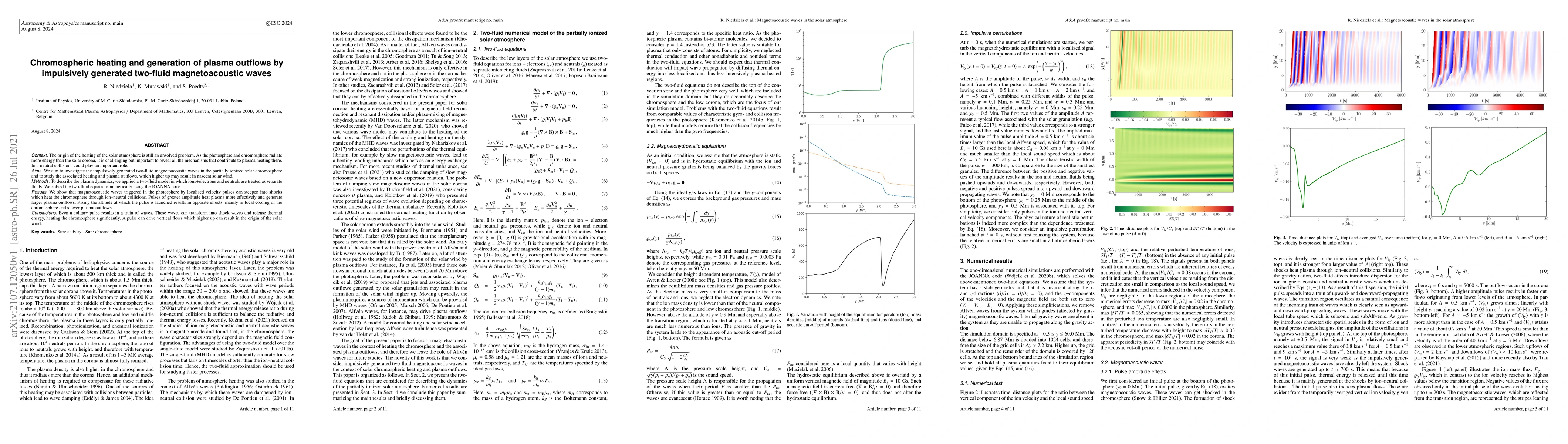 The study presents a detailed numerical analysis of two-fluid magnetoacoustic waves in the partially ionized solar chromosphere, demonstrating their role in heating and generating plasma outflows.