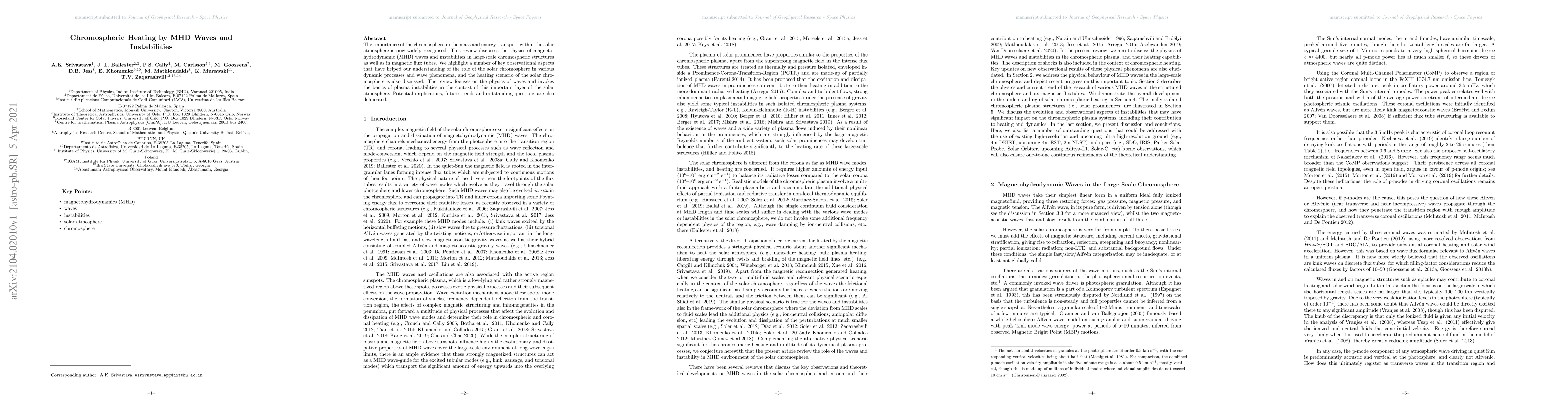 This review explores the role of magnetohydrodynamic (MHD) waves and instabilities in heating the solar chromosphere, emphasizing observational insights and the physics of plasma instabilities within magnetic flux tubes. Key questions and future research directions are also outlined.