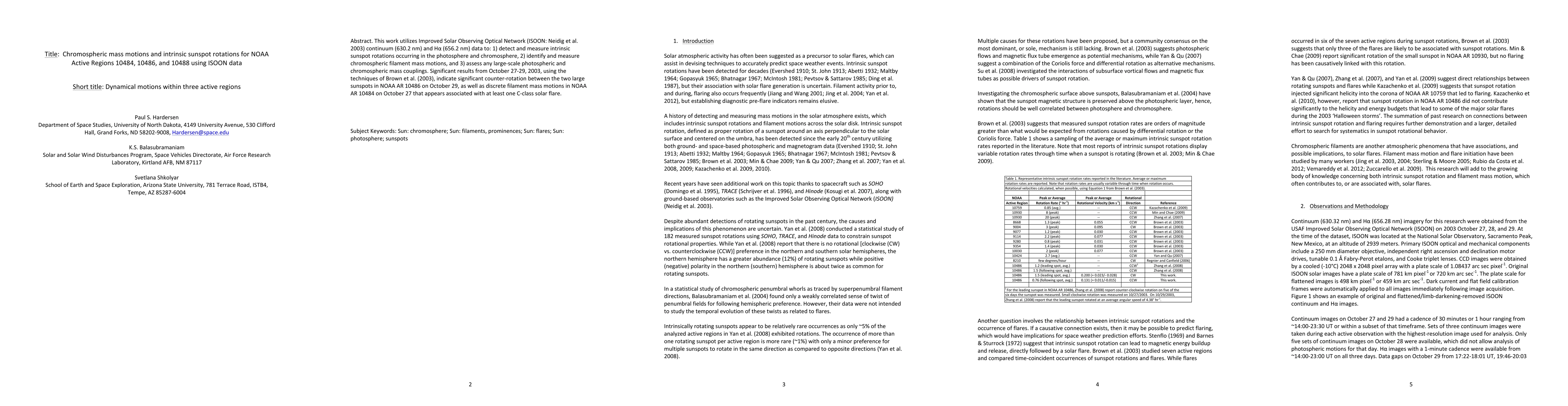 This research paper uses solar data to measure sunspot rotations and chromospheric mass motions in three active regions, revealing significant counter-rotation between sunspots and associations with solar flares.