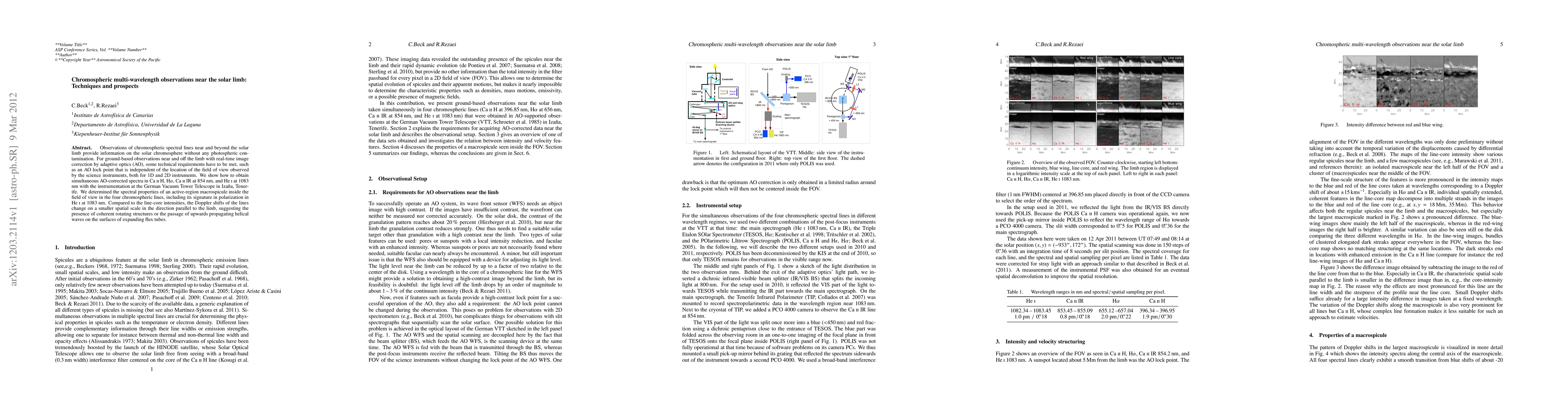This paper details observations of the solar chromosphere using adaptive optics to correct for photospheric contamination, focusing on spectral lines in Ca II H, Ha, Ca II IR, and He I. The study reveals the spectral properties of an active-region macrospicule and suggests the presence of coherent rotating structures or helical waves in the chromosphere.