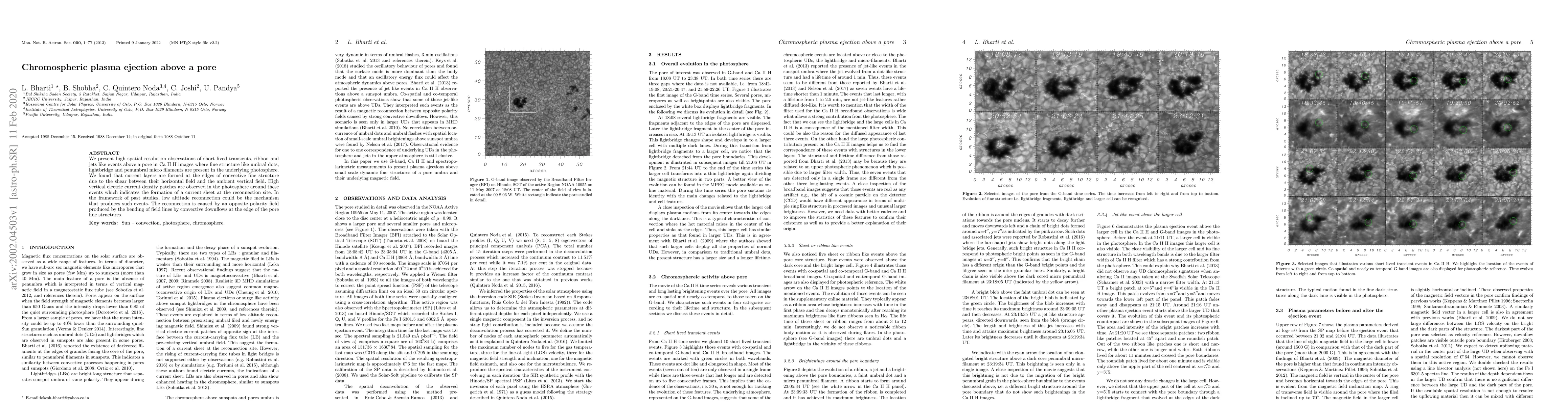 The paper presents high-resolution observations of transient events above a pore in Ca II H images, revealing fine photospheric structures. These events are linked to low-altitude reconnection caused by bent magnetic field lines due to convective downflows, supported by high electric current density patches in the photosphere.