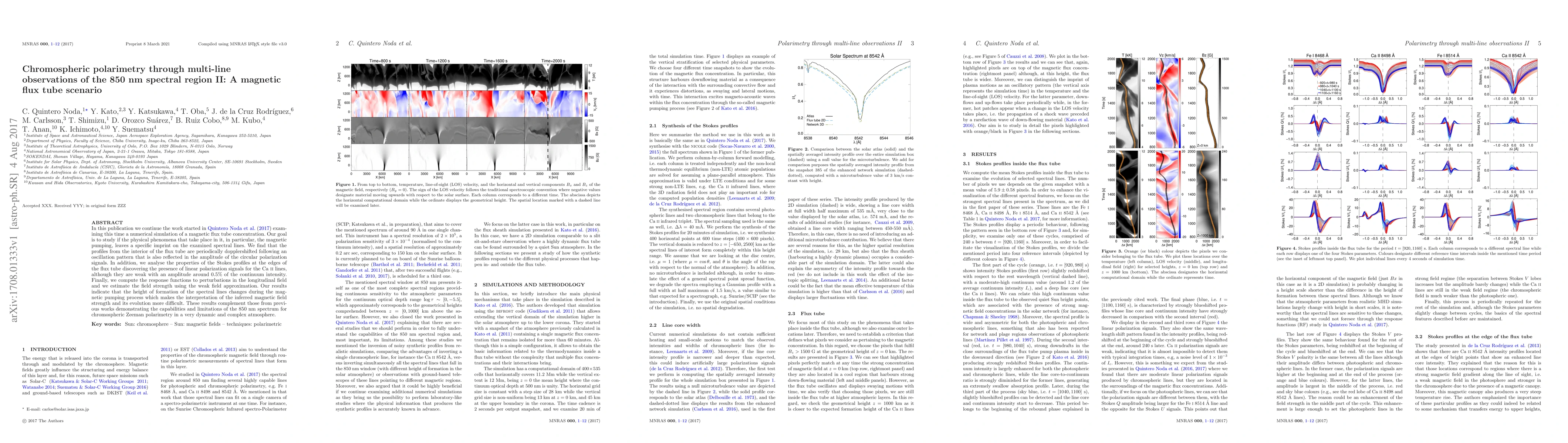 Researchers used 850 nm spectral observations to study magnetic flux tubes in the chromosphere, finding periodic Doppler shifts and oscillations in polarized light that indicate changing line formation heights.