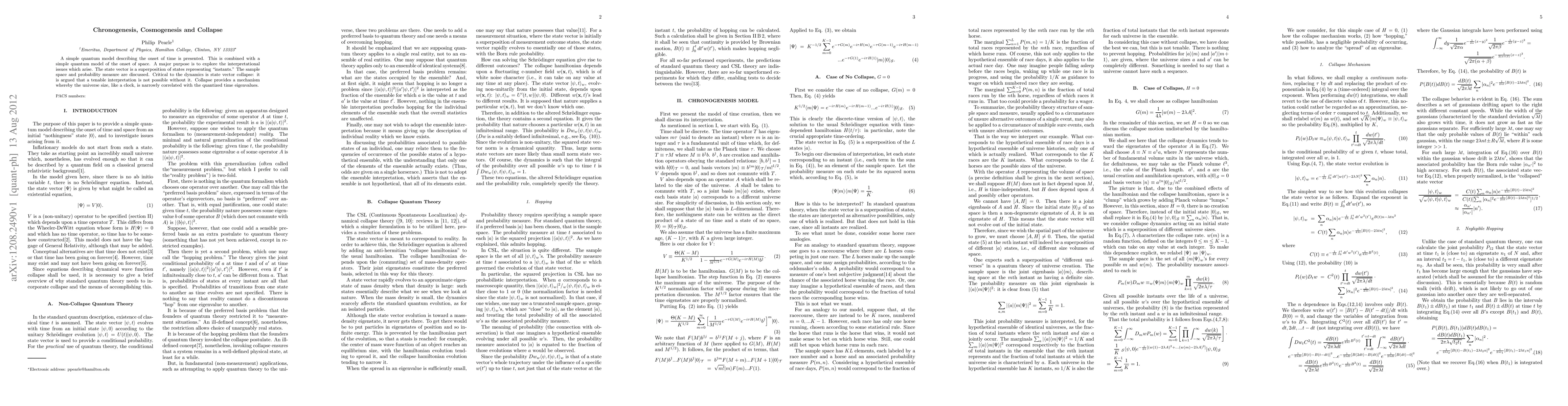 A simple quantum model describing the onset of time is presented. This is combined with a simple quantum model of the onset of space. A major purpose is to explore the interpretational issues which arise. The state vector is a superposition of states representing "instants." The sample space and probability measure are discussed. Critical to the dynamics is state vector collapse: it is argued that a tenable interpretation is not possible without it. Collapse provides a mechanism whereby the universe size, like a clock, is narrowly correlated with the quantized time eigenvalues.