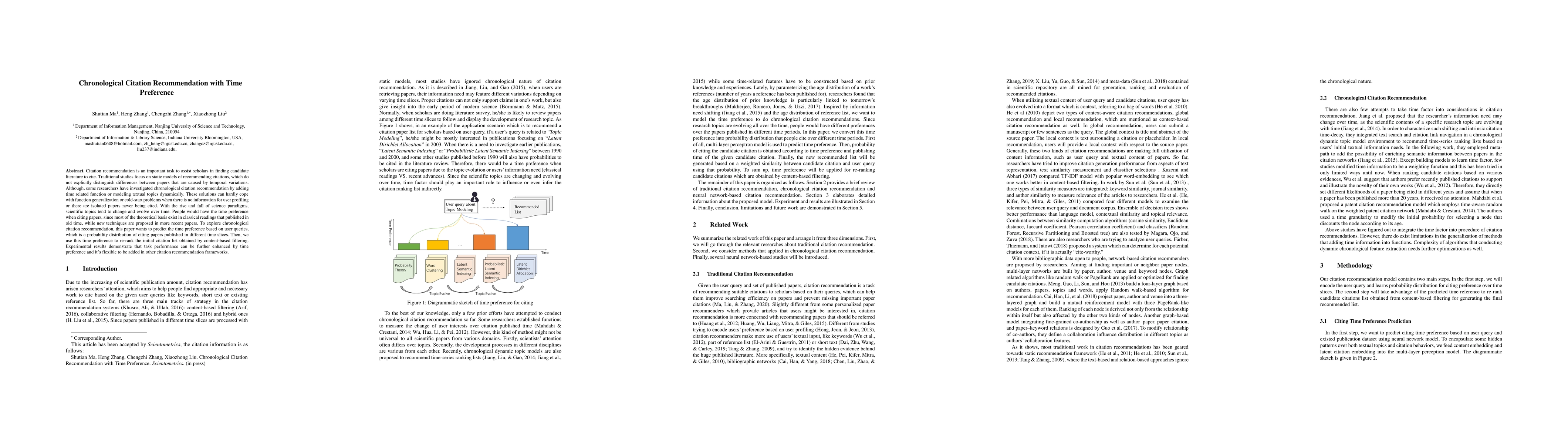 This paper proposes a chronological citation recommendation system that considers users' time preference when citing papers, enhancing task performance through re-ranking initial citation lists.