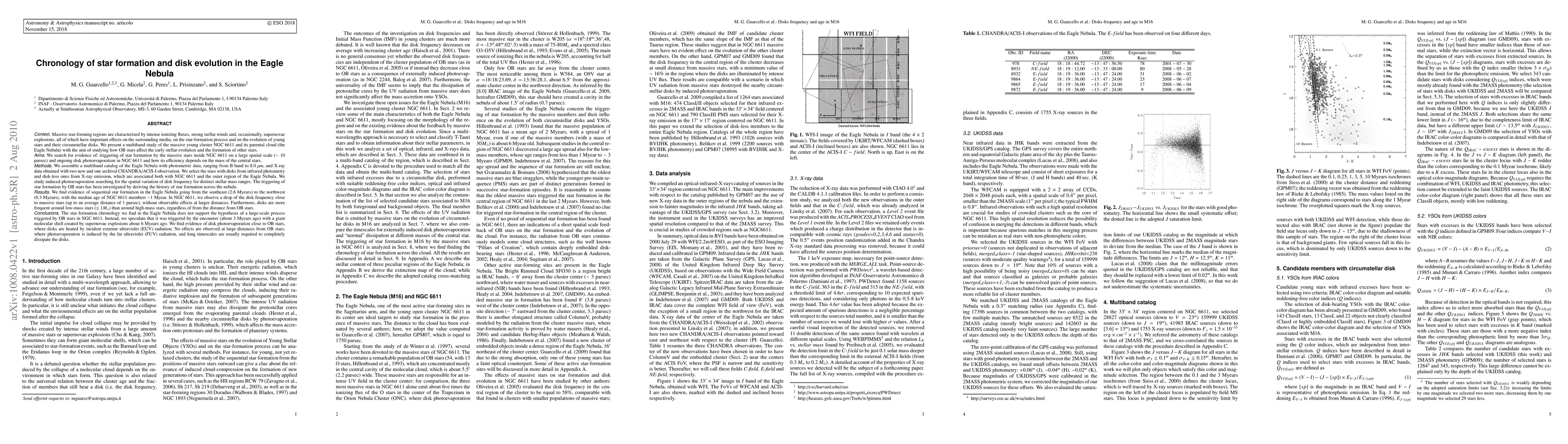 Research in the Eagle Nebula found evidence of sequential star formation across 2.6 million years, with a drop in disk frequency near massive OB stars. This suggests that younger regions have formed more stars than older ones.