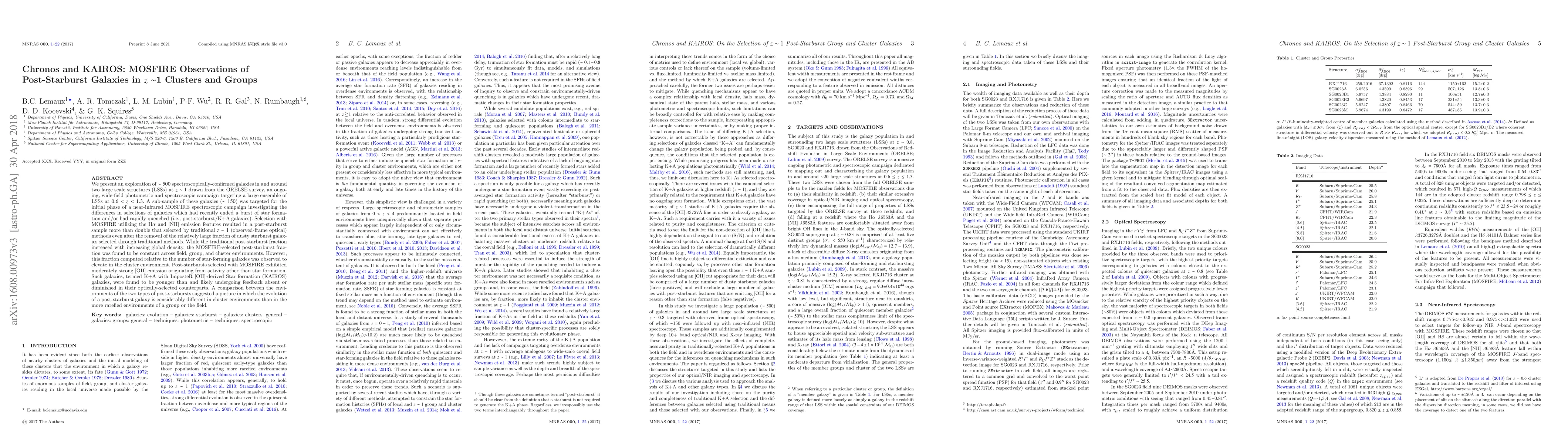 In this study we present the exploration of $\sim$500 spectroscopically confirmed galaxies in and around two large scale structures at $z\sim1$ drawn from the ORELSE survey. A sub-sample of these galaxies ($\sim$150) were targeted for the initial phases of a near-infrared MOSFIRE spectroscopic campaign investigating the differences in selections of galaxies which had recently ended a burst of star formation or had rapidly quenched (i.e., post-starburst or K+A galaxies). Selection with MOSFIRE resulted in a post-starburst sample more than double that selected by traditional $z\sim1$ (observed-frame optical) methods even after the removal of the relatively large fraction of dusty starburst galaxies selected through traditional methods. While the traditional post-starburst fraction increased with increased global density, the MOSFIRE-selected post-starburst fraction was found to be constant in field, group, and cluster environments. However, this fraction relative to the number of galaxies with ongoing star formation was observed to elevate in the cluster environment. Post-starbursts selected with MOSFIRE were predominantly found to exhibit moderately strong [OII] emission originating from activity other than star formation. Such galaxies, termed K+A with ImposteR [OII]-derived Star formation (KAIROS) galaxies, were found to be considerably younger than traditionally-selected post-starbursts and likely undergoing some form of feedback absent or diminished in traditional post-starbursts. A comparison between the environments of the two types of post-starbursts suggests a picture in which the evolution of a post-starburst galaxy is considerably different in cluster environments than in the more rarefied environments of a group or the field.