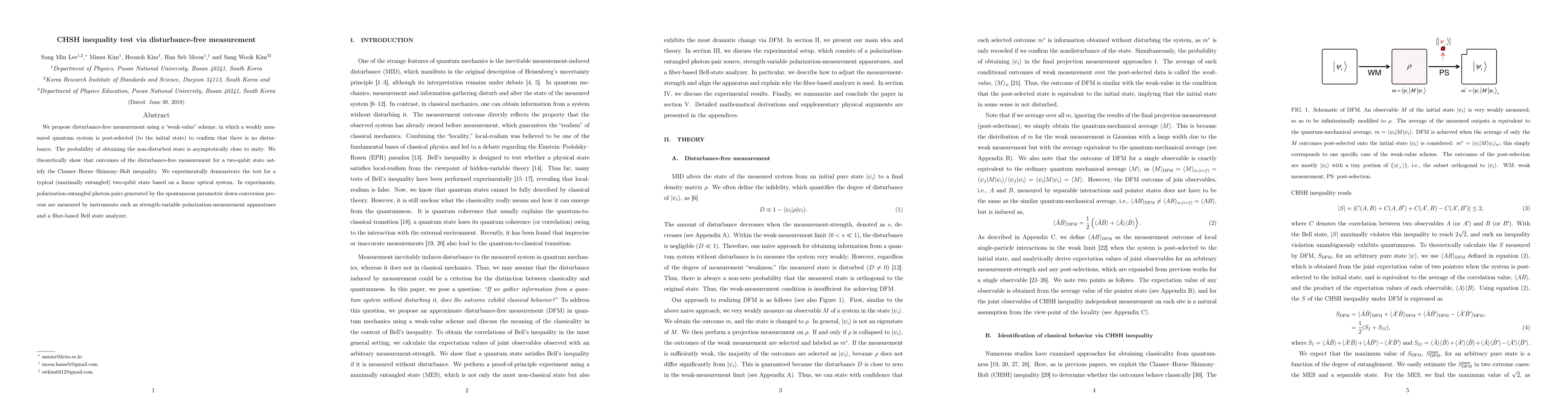 The paper introduces a disturbance-free measurement technique using weak values and demonstrates its application to the CHSH inequality test, providing both theoretical and experimental validation.