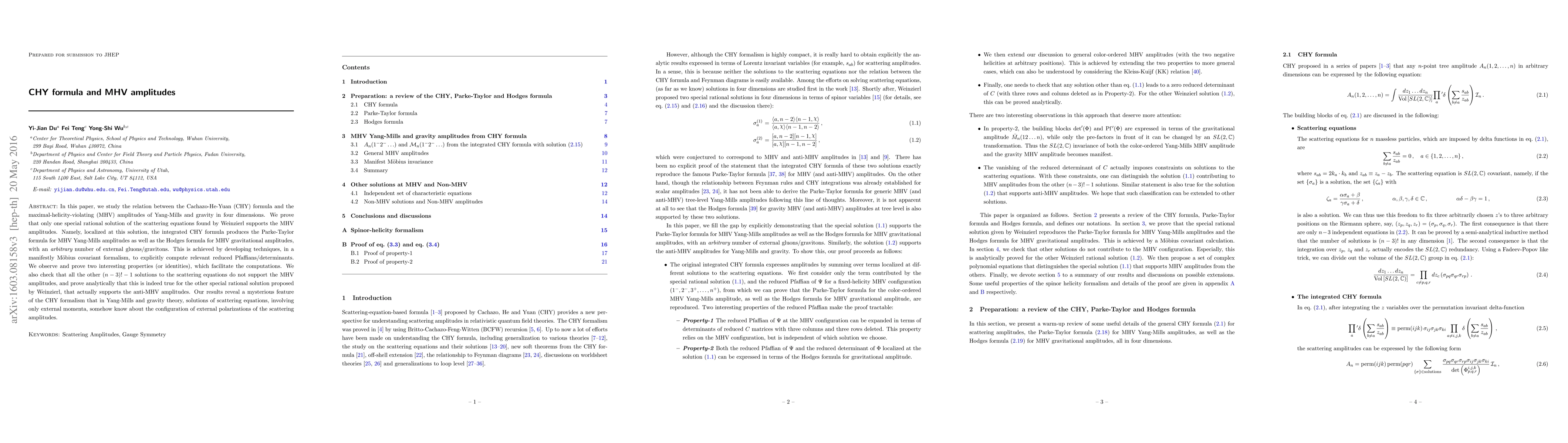 This paper establishes a connection between the Cachazo-He-Yuan (CHY) formula and maximal-helicity-violating (MHV) amplitudes in Yang-Mills and gravity theories, showing that only one specific rational solution to the scattering equations supports these amplitudes, reproducing the Parke-Taylor and Hodges formulas. It also proves that all other solutions do not support MHV amplitudes.