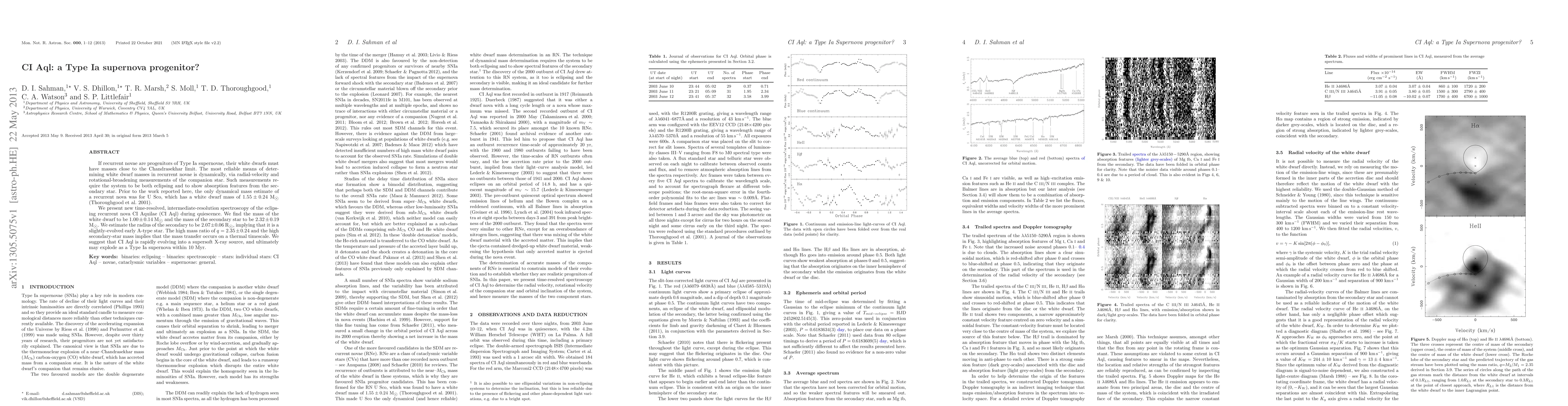 This research presents new spectroscopic data for the eclipsing recurrent nova CI Aquilae, finding a white dwarf mass of 1.00 +/- 0.14 Msolar, suggesting it may evolve into a Type Ia supernova within 10 Myr due to its high mass ratio and secondary star mass.