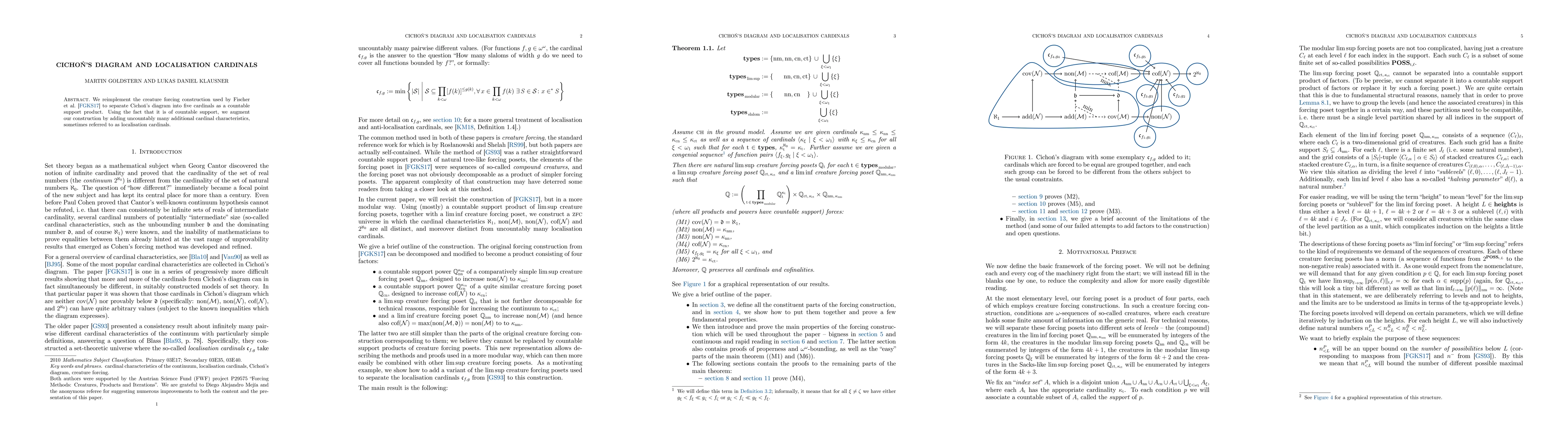 We reimplement the creature forcing construction used by Fischer et al. (arXiv:1402.0367) to separate Cicho\'{n}'s diagram into five cardinals as a countable support product. Using the fact that it is of countable support, we augment our construction by adding uncountably many additional cardinal characteristics, sometimes referred to as localisation cardinals.