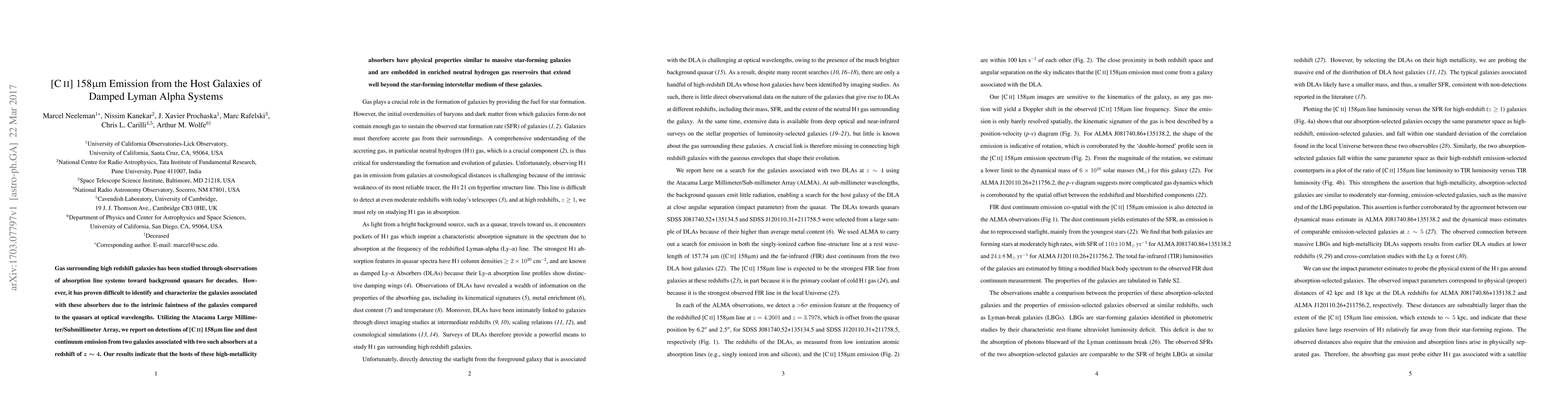 This study uses the Atacama Large Millimeter/Submillimeter Array to detect [CII] 158 micron emission and dust continuum from two galaxies linked to high-redshift damped Lyman alpha systems, revealing they possess properties akin to massive star-forming galaxies with extensive enriched neutral hydrogen gas reservoirs.