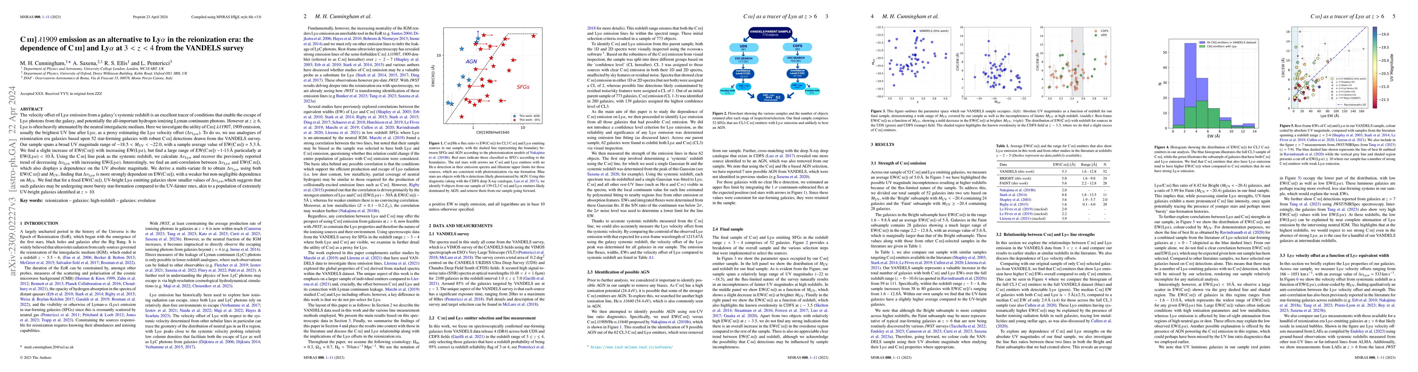 The velocity offset of Ly$\alpha$ emission from a galaxy's systemic redshift is an excellent tracer of conditions that enable the escape of Ly$\alpha$ photons from the galaxy, and potentially hydrogen ionizing Lyman continuum photons. However at $z\geq6$, Ly$\alpha$ is often heavily attenuated by the neutral intergalactic medium. Here we investigate the utility of Ciii],$\lambda\lambda1907,1909$ emission, usually the brightest UV line after Ly$\alpha$, as a proxy estimating the Ly$\alpha$ velocity offset ($\Delta v_{\rm{Ly}\alpha}$). To do so, we use analogues of reionization era galaxies based upon 52 star-forming galaxies with robust Ciii] detections drawn from the VANDELS survey. Our sample spans a broad UV magnitude range of $-18.5 < M_{\rm{UV}} < -22.0$, with a sample average value of EW(Ciii]) $=5.3$\,{\AA}. We find a slight increase of EW(Ciii]) with increasing EW(Ly$\alpha$), but find a large range of EW(Ciii]) $\sim$1-13\,{\AA} particularly at EW(Ly$\alpha$) $<10$\,{\AA}. Using the Ciii] line peak as the systemic redshift, we calculate $\Delta v_{\rm{Ly}\alpha}$ and recover the previously reported trend of decreasing $\Delta v_{\rm{Ly}\alpha}$ with increasing EW(Ly$\alpha$). Interestingly, we find an anti-correlation between $\Delta v_{\rm{Ly}\alpha}$ and EW(Ciii]), which also displays a dependence on the UV absolute magnitude. We derive a multi-variate fit to obtain $\Delta v_{\rm{Ly}\alpha}$ using both EW(Ciii]) and $M_{\rm{UV}}$, finding that $\Delta v_{\rm{Ly}\alpha}$ is more strongly dependent on EW(Ciii]), with a weaker but non-negligible dependence on $M_{\rm{UV}}$. We find that for a fixed EW(Ciii]), UV-bright Ly$\alpha$ emitting galaxies show smaller values of $\Delta v_{\rm{Ly}\alpha}$,which suggests that such galaxies may be undergoing more bursty star-formation compared to the UV-fainter ones, akin to a population of extremely UV-bright galaxies identified at $z>10$.