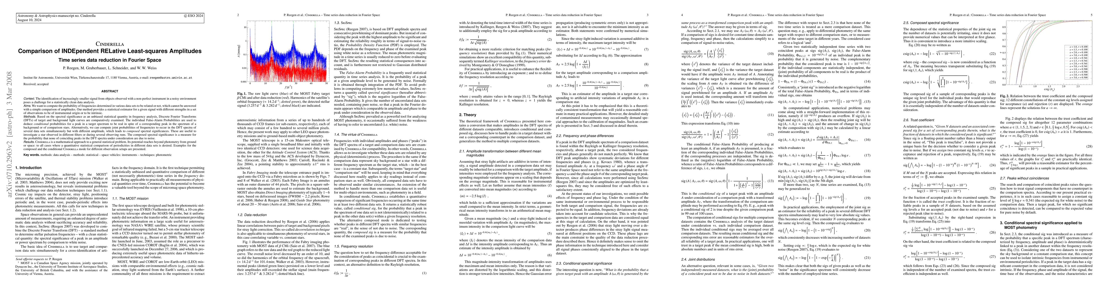 The identification of increasingly smaller signal from objects observed with a non-perfect instrument in a noisy environment poses a challenge for a statistically clean data analysis. We want to compute the probability of frequencies determined in various data sets to be related or not, which cannot be answered with a simple comparison of amplitudes. Our method provides a statistical estimator for a given signal with different strengths in a set of observations to be of instrumental origin or to be intrinsic. Based on the spectral significance as an unbiased statistical quantity in frequency analysis, Discrete Fourier Transforms (DFTs) of target and background light curves are comparatively examined. The individual False-Alarm Probabilities are used to deduce conditional probabilities for a peak in a target spectrum to be real in spite of a corresponding peak in the spectrum of a background or of comparison stars. Alternatively, we can compute joint probabilities of frequencies to occur in the DFT spectra of several data sets simultaneously but with different amplitude, which leads to composed spectral significances. These are useful to investigate a star observed in different filters or during several observing runs. The composed spectral significance is a measure for the probability that none of coinciding peaks in the DFT spectra under consideration are due to noise. Cinderella is a mathematical approach to a general statistical problem. Its potential reaches beyond photometry from ground or space: to all cases where a quantitative statistical comparison of periodicities in different data sets is desired. Examples for the composed and the conditional Cinderella mode for different observation setups are presented.