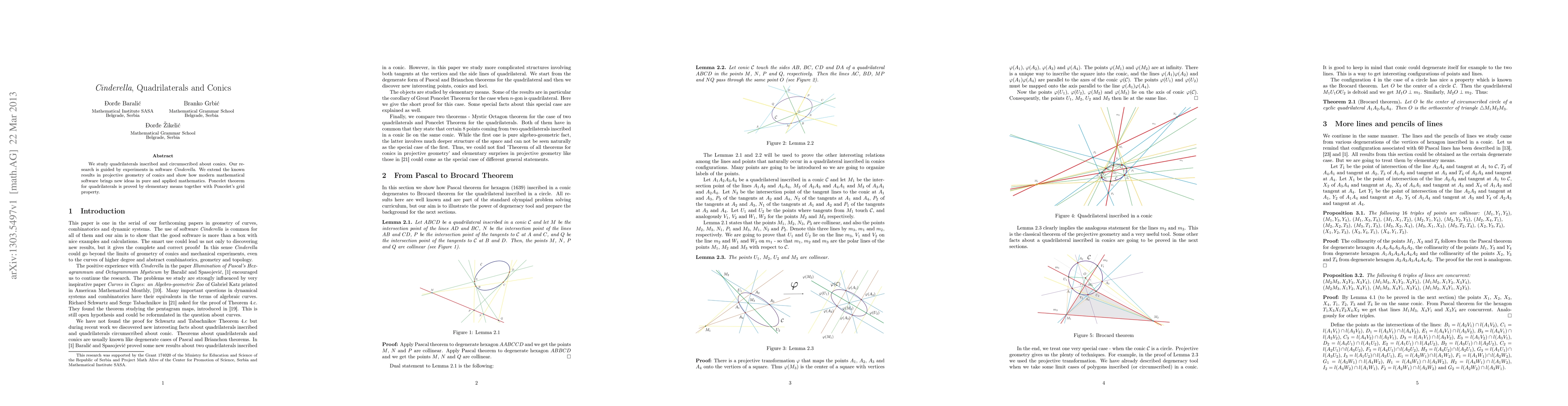 This paper explores quadrilaterals inscribed and circumscribed around conics, extending projective geometry results using the Cinderella software. It proves the Poncelet theorem for quadrilaterals and Poncelet's grid property through elementary methods, demonstrating modern software's role in advancing pure and applied mathematics.