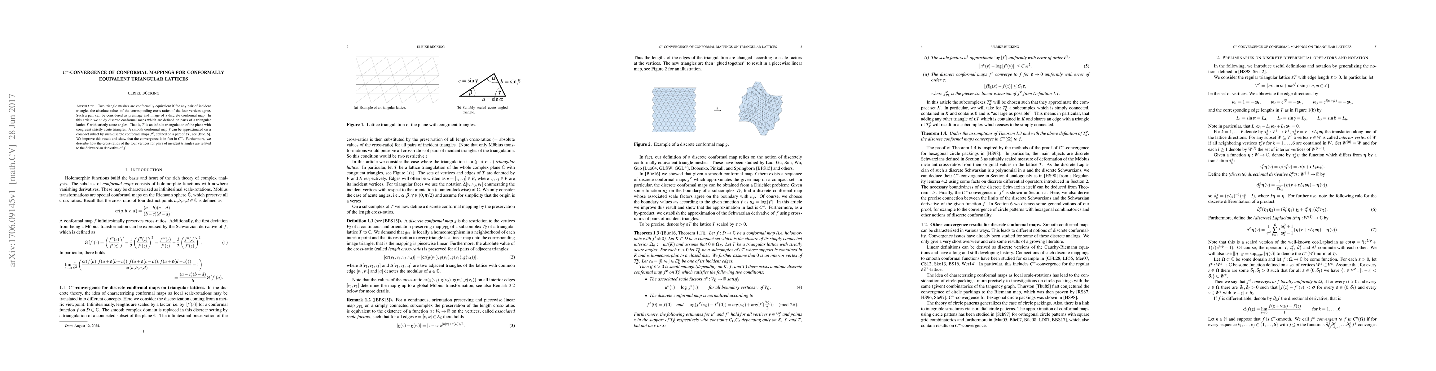 Two triangle meshes are conformally equivalent if for any pair of incident triangles the absolute values of the corresponding cross-ratios of the four vertices agree. Such a pair can be considered as preimage and image of a discrete conformal map. In this article we study discrete conformal maps which are defined on parts of a triangular lattice $T$ with strictly acute angles. That is, $T$ is an infinite triangulation of the plane with congruent strictly acute triangles. A smooth conformal map $f$ can be approximated on a compact subset by such discrete conformal maps $f^\varepsilon$, defined on a part of $\varepsilon T$ for $\varepsilon>0$ small enough, see [U. B\"ucking, Approximation of conformal mappings using conformally equivalent triangular lattices, in "Advances in Discrete Differential Geometry" (A.I. Bobenko ed.), Springer (2016), 133--149]. We improve this result and show that the convergence is in fact in $C^\infty$. Furthermore, we describe how the cross-ratios of the four vertices for pairs of incident triangles are related to the Schwarzian derivative of $f$.
