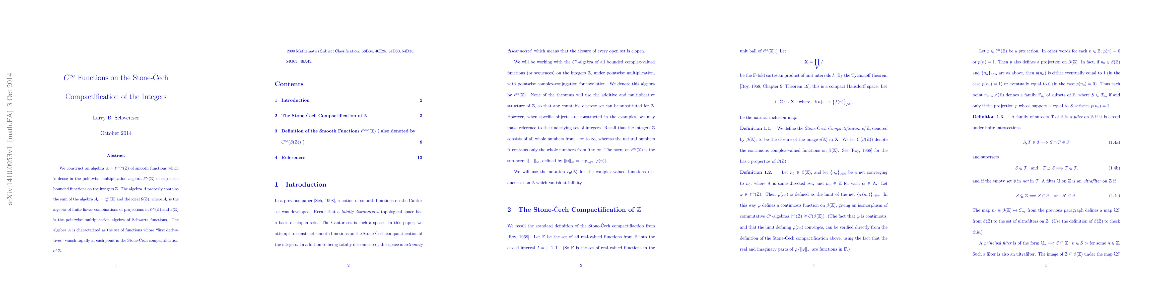 We construct an algebra $A=\ell^{\infty \infty}({\Bbb Z})$ of smooth functions which is dense in the pointwise multiplication algebra $\ell^\infty({\Bbb Z})$ of sup-norm bounded functions on the integers $\Bbb Z$. The algebra $A$ properly contains the sum of the algebra $A_c=\ell_c^\infty({\Bbb Z})$ and the ideal ${\cal S}({\Bbb Z})$, where $A_c$ is the algebra of finite linear combinations of projections in $\ell^\infty({\Bbb Z})$ and ${\cal S}({\Bbb Z})$ is the pointwise multiplication algebra of Schwartz functions. The algebra $A$ is characterized as the set of functions whose "first derivatives" vanish rapidly at each point in the Stone-${\check {\rm C}}$ech compactification of $\Bbb Z$.