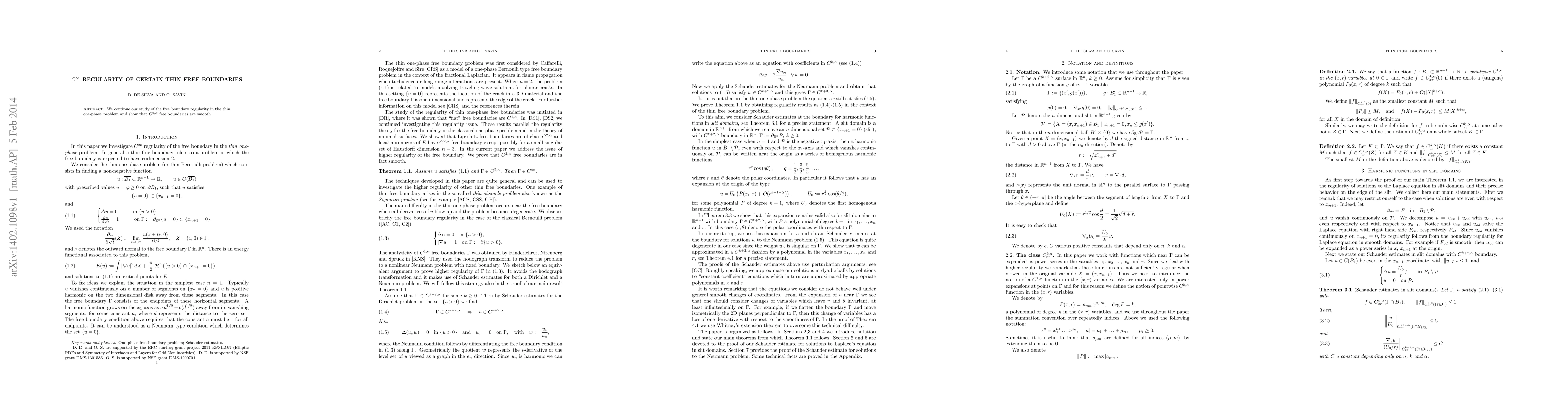 Summary: This paper investigates the regularity of free boundaries in thin one-phase problems, proving that $C^{2,\alpha}$ free boundaries are $C^{\infty}$ smooth. The results contribute to the understanding of free boundary regularity in geometric partial differential equations.