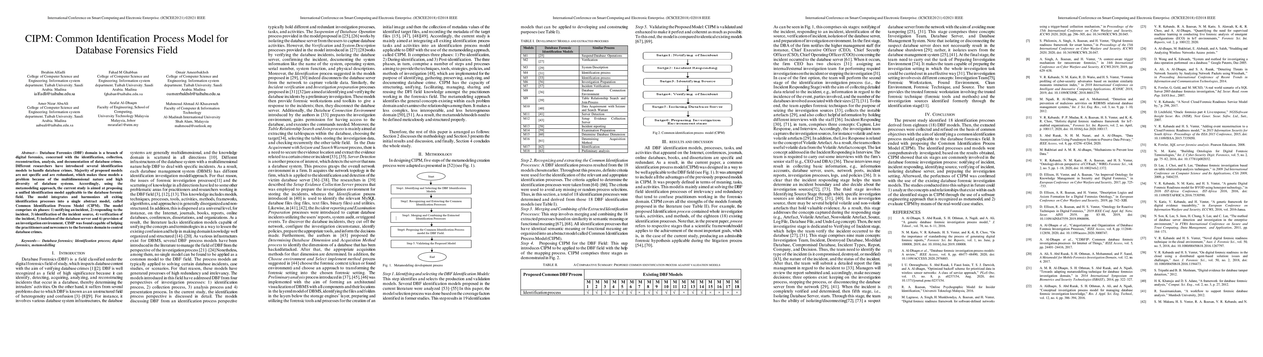 The paper proposes a unified identification model, CIPM, for database forensics, integrating existing processes into a coherent framework. CIPM consists of six phases aimed at managing database crimes effectively, providing a structured approach for practitioners in the field.