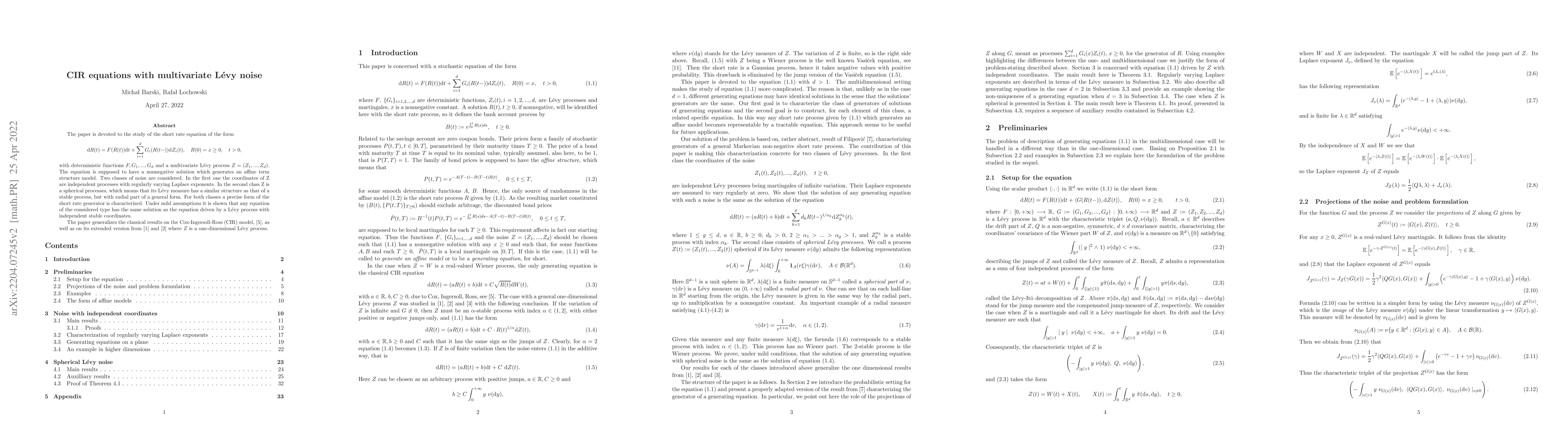 The paper is devoted to the study of the short rate equation of the form $$ d R(t)=F(R(t)) dt+\sum_{i=1}^{d}G_i(R(t-)) dZ_i(t), \quad R(0)=x\geq 0,\quad t>0, $$ with deterministic functions $F,G_1,...,G_d$ and a multivariate L\'evy process $Z=(Z_1,...,Z_d)$. The equation is supposed to have a nonnegative solution which generates an affine term structure model. Two classes of noise are considered. In the first one the coordinates of Z are independent processes with regularly varying Laplace exponents. In the second class Z is a spherical processes, which means that its L\'evy measure has a similar structure as that of a stable process, but with radial part of a general form. For both classes a precise form of the short rate generator is characterized. Under mild assumptions it is shown that any equation of the considered type has the same solution as the equation driven by a L\'evy process with independent stable coordinates. The paper generalizes the classical results on the Cox-Ingersoll-Ross (CIR) model as well as on its extended version where $Z$ is a one-dimensional L\'evy process.