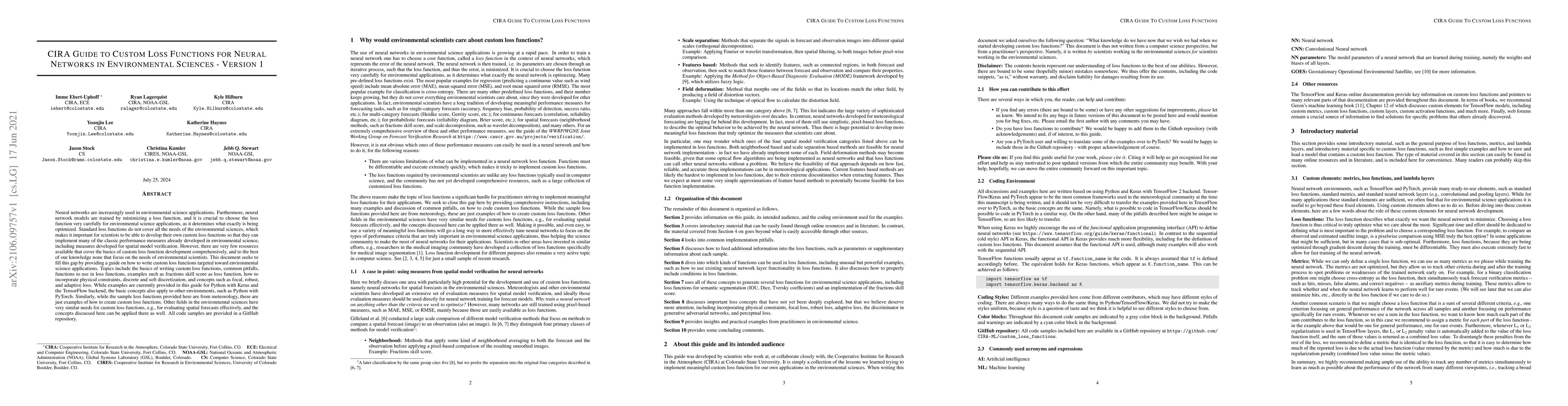 Neural networks are increasingly used in environmental science applications. Furthermore, neural network models are trained by minimizing a loss function, and it is crucial to choose the loss function very carefully for environmental science applications, as it determines what exactly is being optimized. Standard loss functions do not cover all the needs of the environmental sciences, which makes it important for scientists to be able to develop their own custom loss functions so that they can implement many of the classic performance measures already developed in environmental science, including measures developed for spatial model verification. However, there are very few resources available that cover the basics of custom loss function development comprehensively, and to the best of our knowledge none that focus on the needs of environmental scientists. This document seeks to fill this gap by providing a guide on how to write custom loss functions targeted toward environmental science applications. Topics include the basics of writing custom loss functions, common pitfalls, functions to use in loss functions, examples such as fractions skill score as loss function, how to incorporate physical constraints, discrete and soft discretization, and concepts such as focal, robust, and adaptive loss. While examples are currently provided in this guide for Python with Keras and the TensorFlow backend, the basic concepts also apply to other environments, such as Python with PyTorch. Similarly, while the sample loss functions provided here are from meteorology, these are just examples of how to create custom loss functions. Other fields in the environmental sciences have very similar needs for custom loss functions, e.g., for evaluating spatial forecasts effectively, and the concepts discussed here can be applied there as well. All code samples are provided in a GitHub repository.