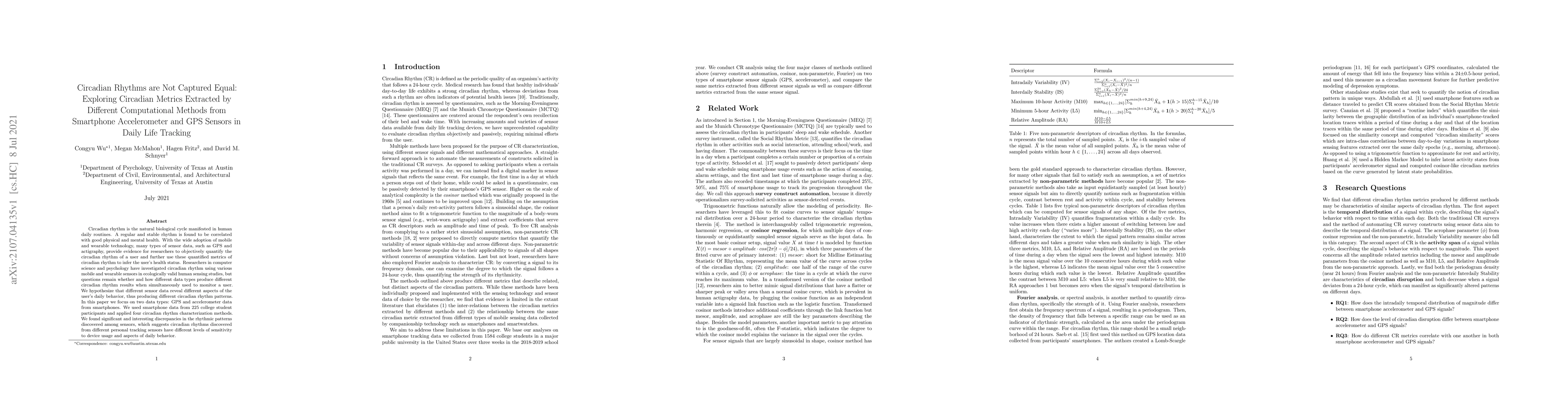 This paper investigates how different computational methods applied to smartphone GPS and accelerometer data reveal varying circadian rhythm patterns among college students. The study found significant discrepancies in the circadian metrics derived from these sensors, indicating that different data types may capture different aspects of daily behavior and thus produce distinct circadian rhythm results.