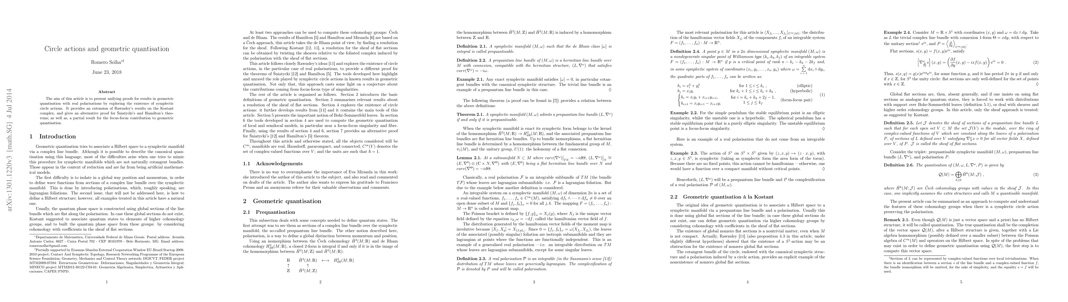 This paper presents unified proofs for geometric quantisation results using symplectic circle actions, extending Rawnsley's work on the Kostant complex and providing alternative proofs for Sniatycki's and Hamilton's theorems, along with a partial result on the focus-focus contribution.