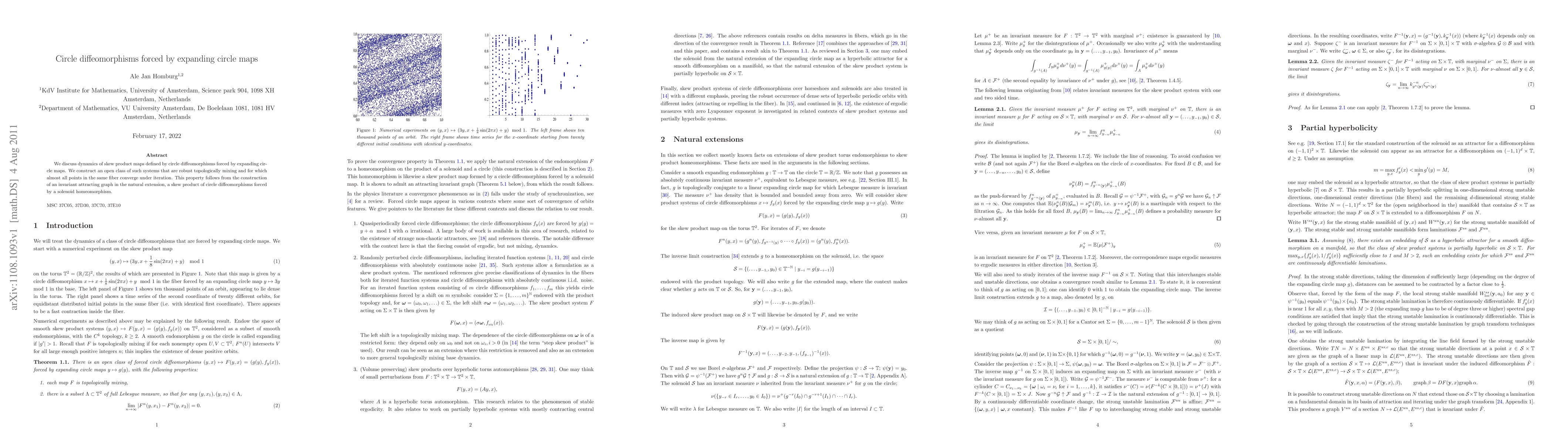 We discuss dynamics of skew product maps defined by circle diffeomorphisms forced by expanding circle maps. We construct an open class of such systems that are robust topologically mixing and for which almost all points in the same fiber converge under iteration. This property follows from the construction of an invariant attracting graph in the natural extension, a skew product of circle diffeomorphisms forced by a solenoid homeomorphism.