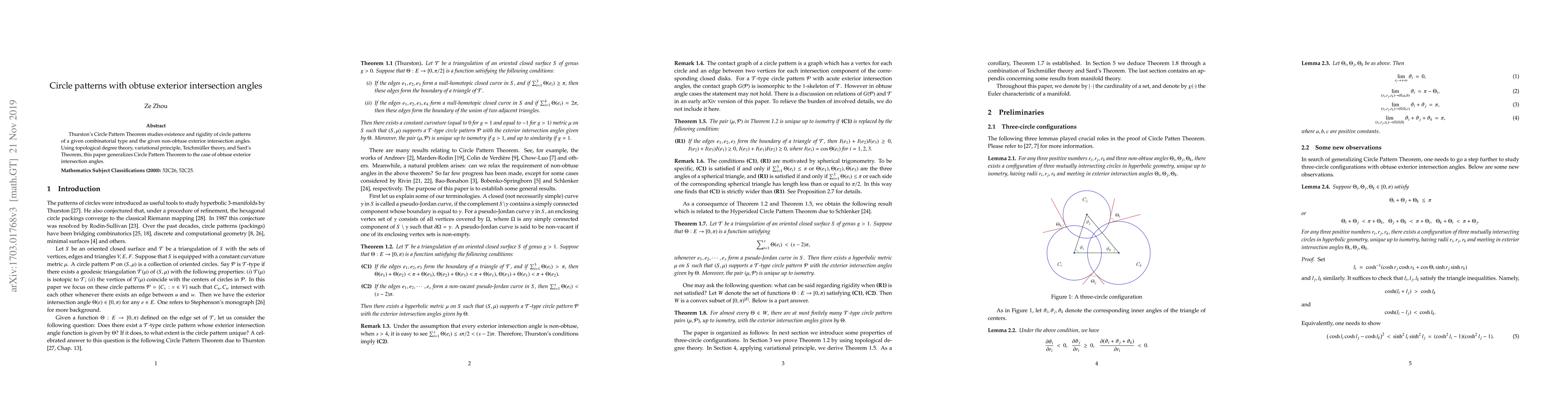 This paper extends Thurston's Circle Pattern Theorem to include circle patterns with obtuse exterior intersection angles, employing topological degree theory, variational principles, Teichmüller theory, and Sard's Theorem to achieve this generalization.