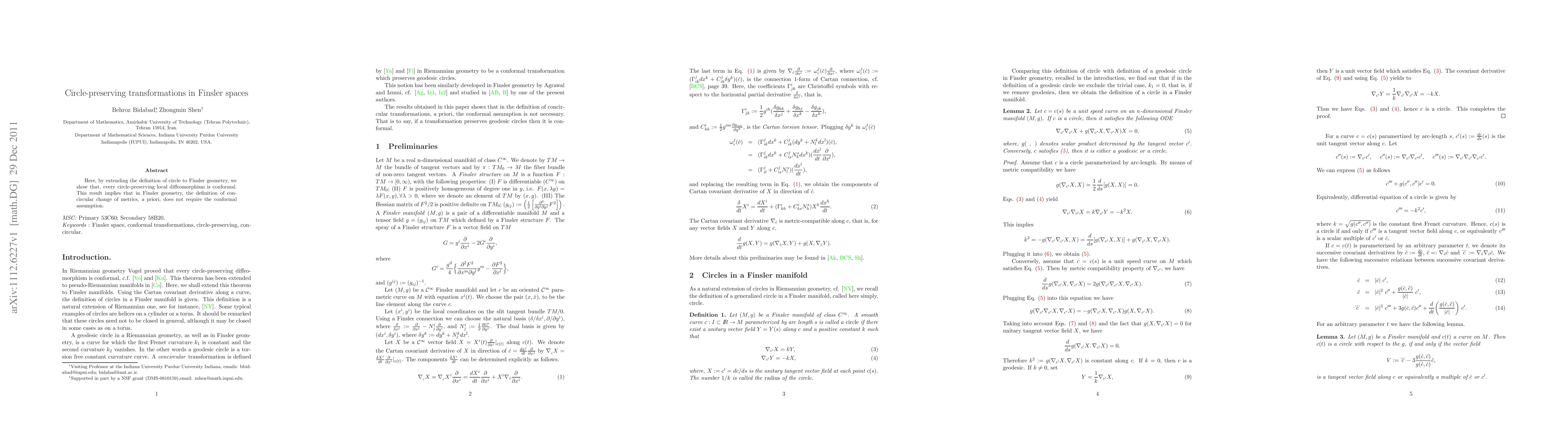 Here, by extending the definition of circle to Finsler geometry, we show that, every circle-preserving local diffeomorphism is conformal. This result implies that in Finsler geometry, the definition of concircular change of metrics, a priori, does not require the conformal assumption.